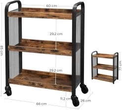 Songmics Ruimtebesparende Opbergtrolley | Toren Met 4 Laden Op Wieltjes | 45x17x83cm | Wit/Bruin