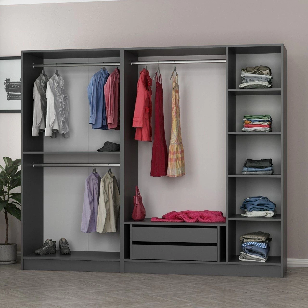 Qua esthetiek heeft de Woody Fashion Kledingkast een stijlvolle antracietkleur, die een vleugje verfijning toevoegt aan je interieur. Of je huis nu een moderne of traditionele uitstraling heeft, deze kledingkast past er naadloos in en verbetert de algehele esthetiek van je kamer.