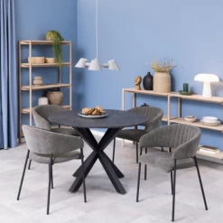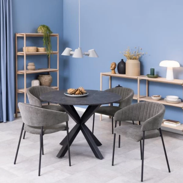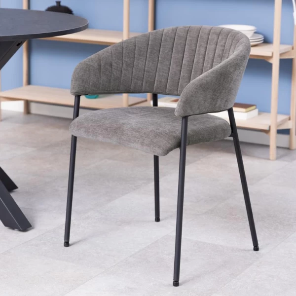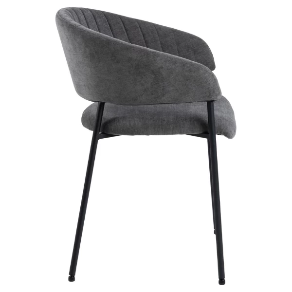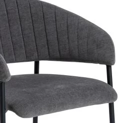Armstoel Ann is voorzien van verticale stiksels en bekleed met lichtgrijze stof. Deze stof is scheur- en slijtvast en voelt zacht en warm aan. Door zijn grijze bekleding is deze stoel een tijdloos meubelstuk, dat in elk interieur past. Het onderstel van de stoel bestaat uit 4 robuuste poten uit zwart gepoedercoat metaal. Deze stoelย is ook verkrijgbaar met een donkerblauwe bekleding.ย