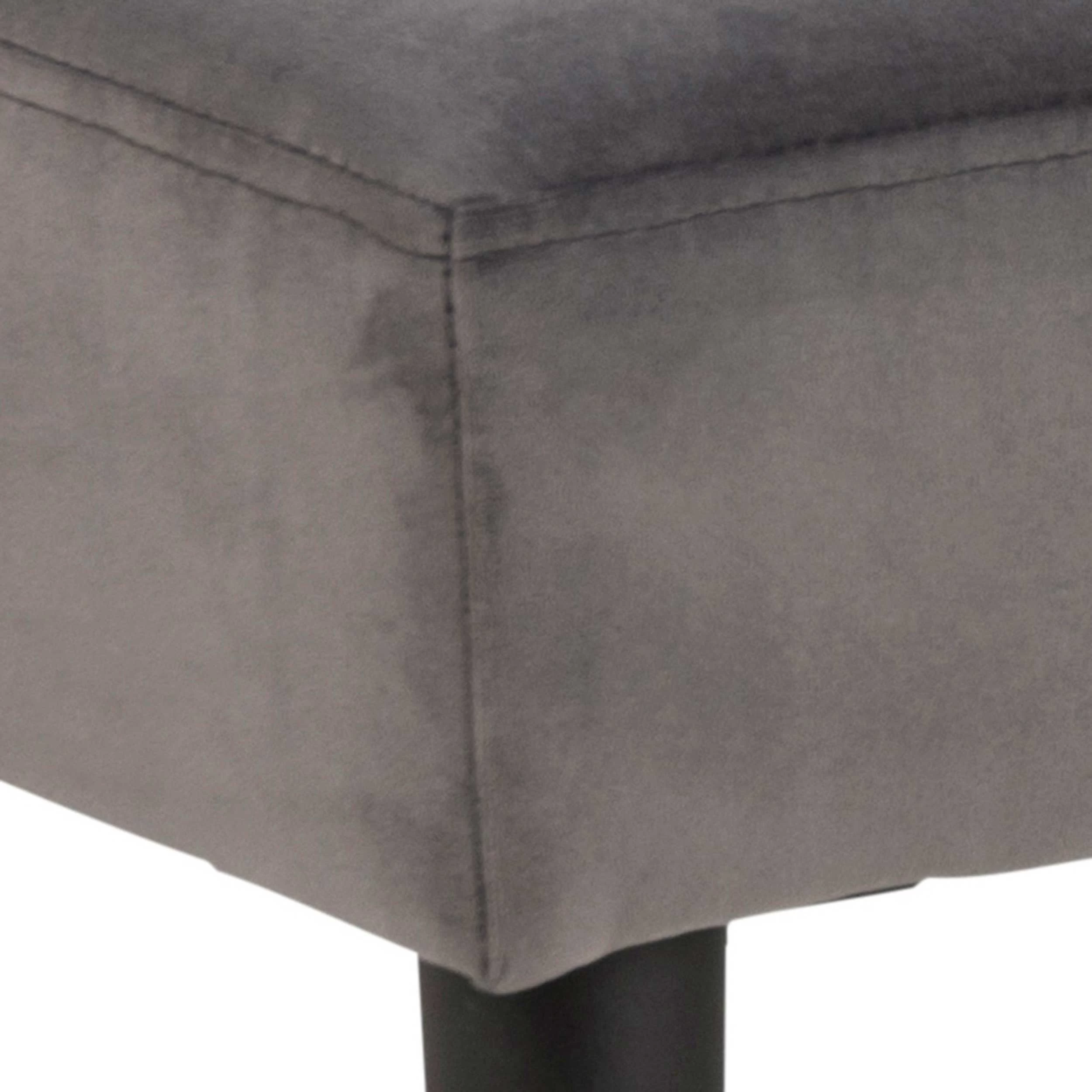 In de categorie ‘niet noodzakelijk, wél heel erg leuk’: dit mooie bankje van de Gloria-serie. Het bankje is 95 cm lang en past daardoor perfect als finishing touch in je woonkamer, hal of slaapkamer. De matzwarte poten zijn gemaakt van gepoedercoat metaal, de zitting is overtrokken met een donkergrijze stof.