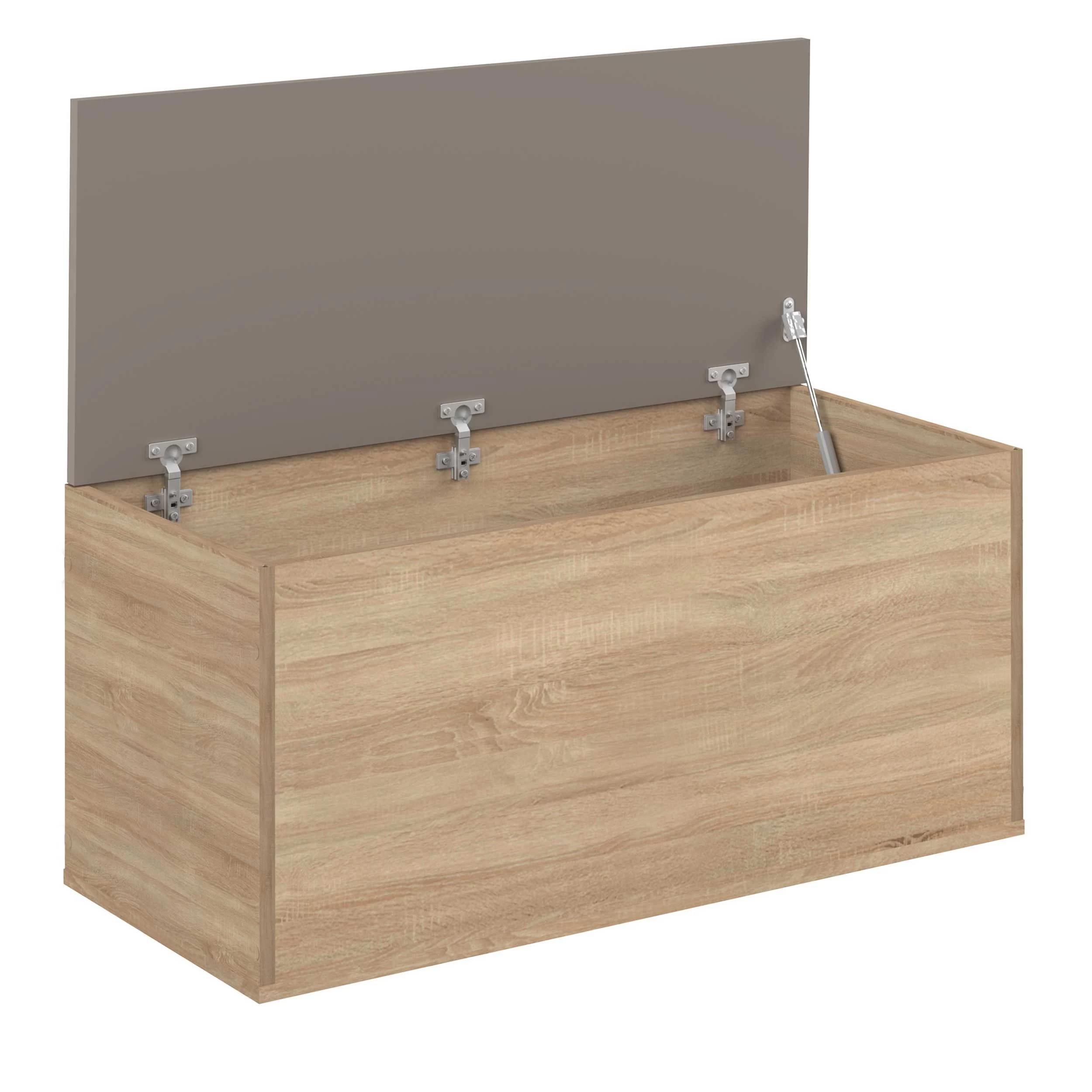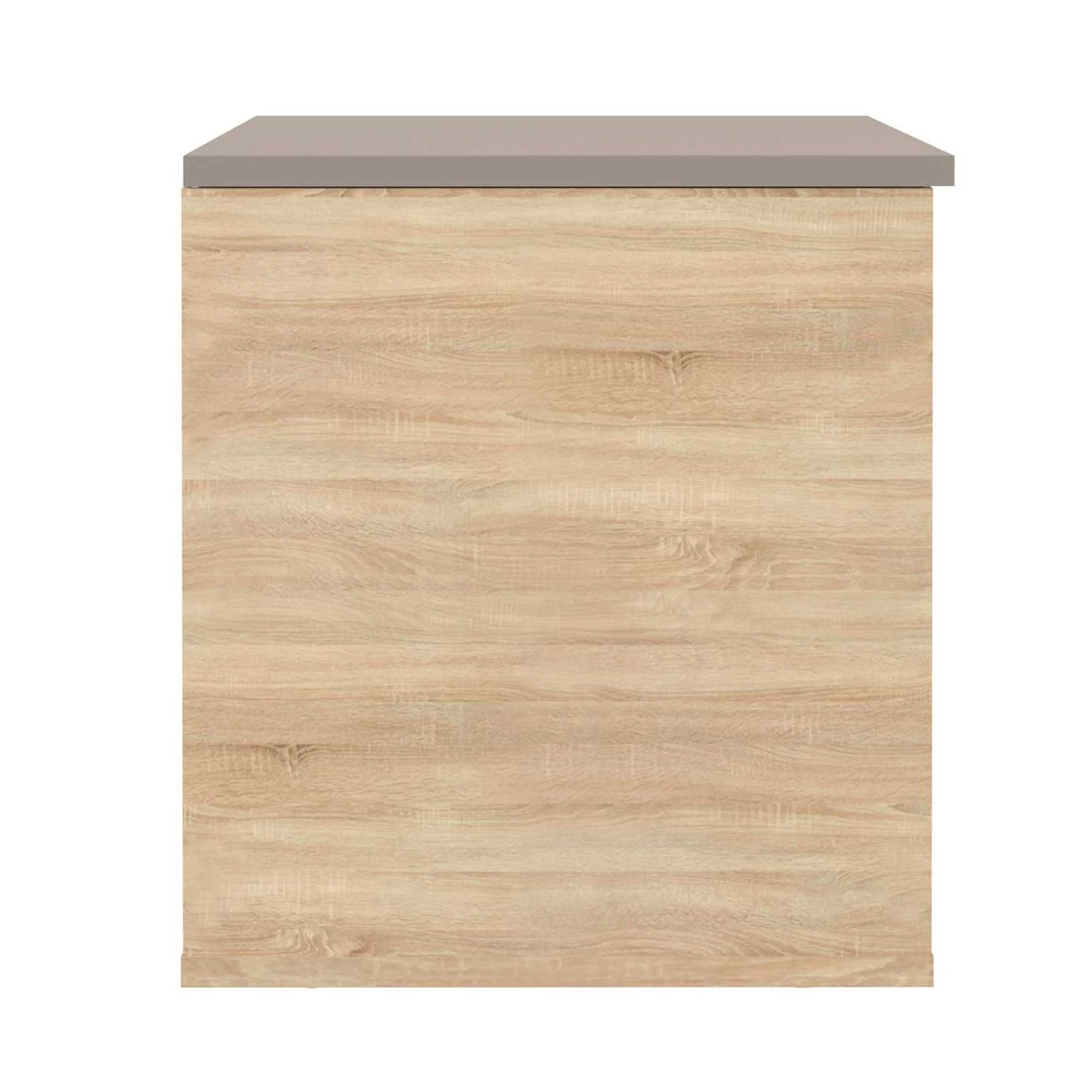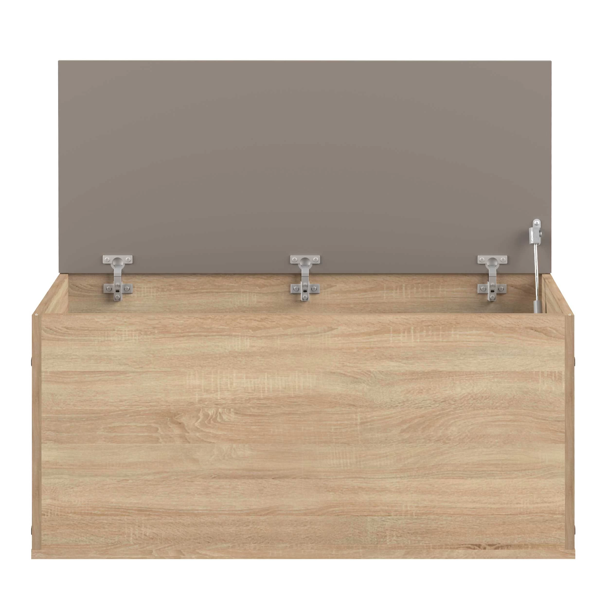 Bank Knox is gemaakt van spaanplaat met afwerking in eikdecor en heeft een taupekleurig deksel. Ook beschikbaar in andere kleurencombinaties.