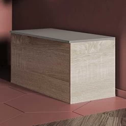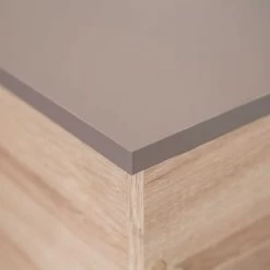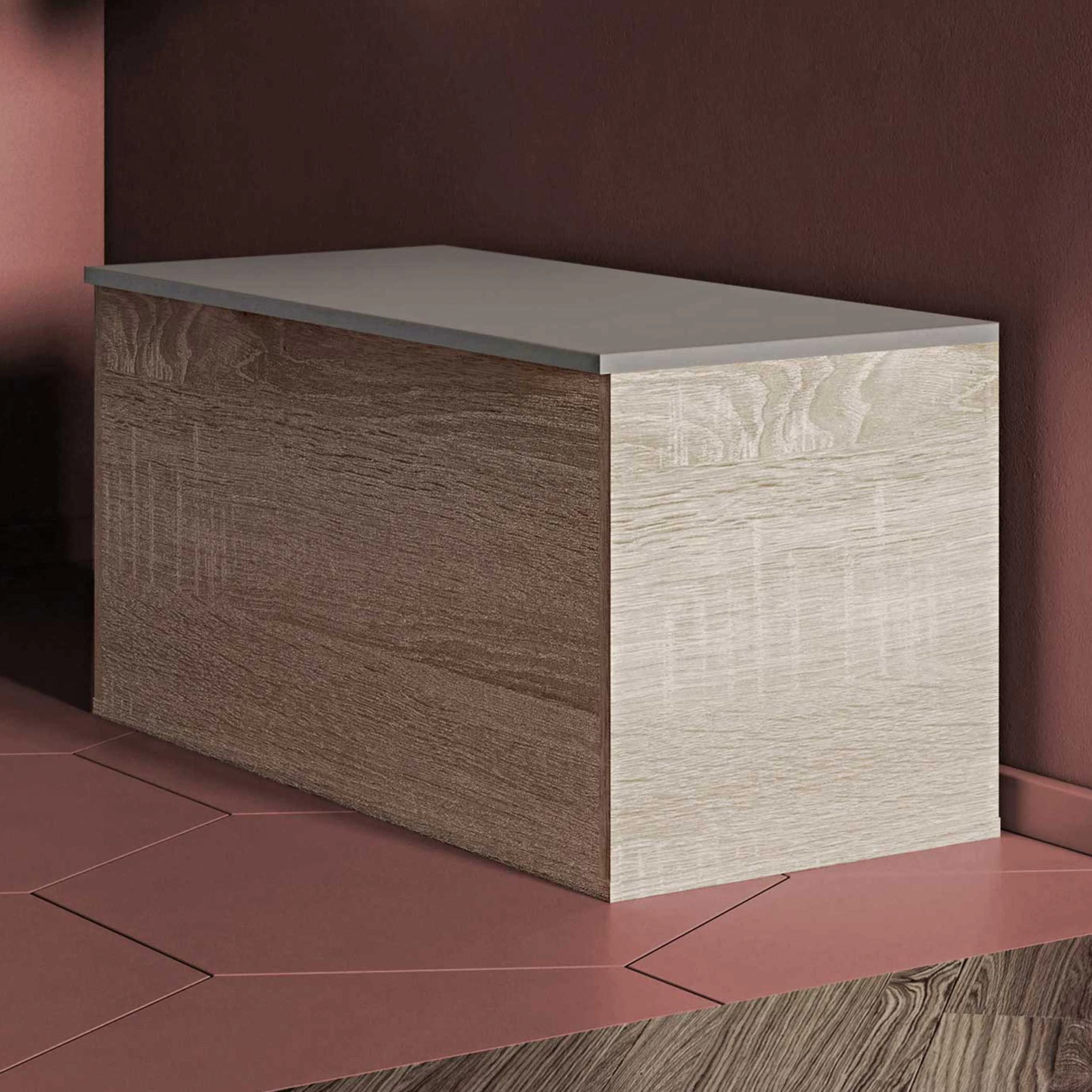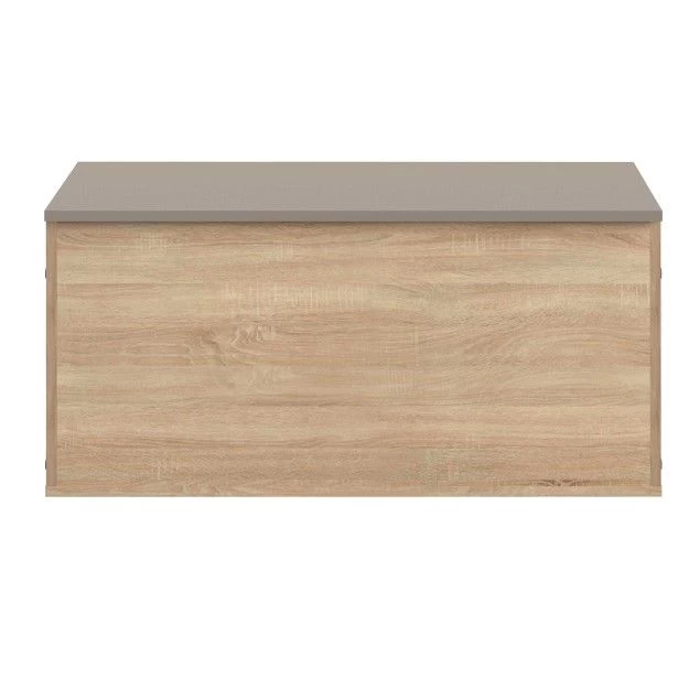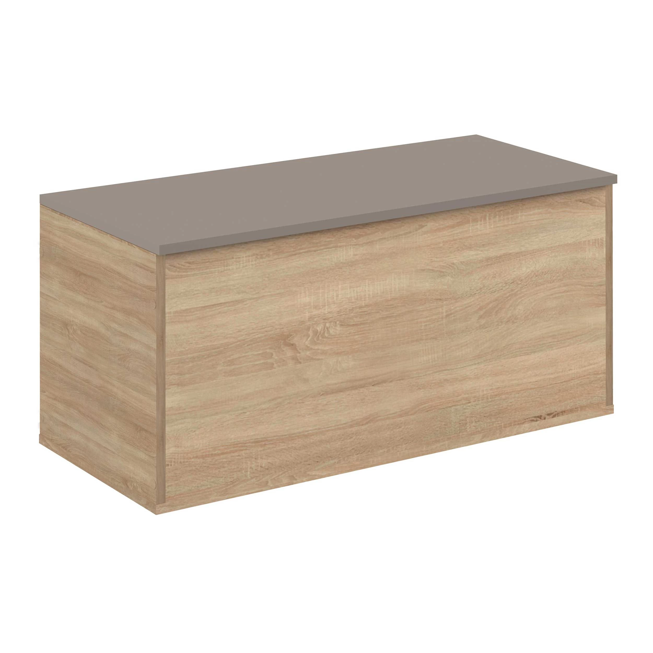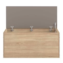 Bank Knox is gemaakt van spaanplaat met afwerking in eikdecor en heeft een taupekleurig deksel. Ook beschikbaar in andere kleurencombinaties.