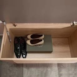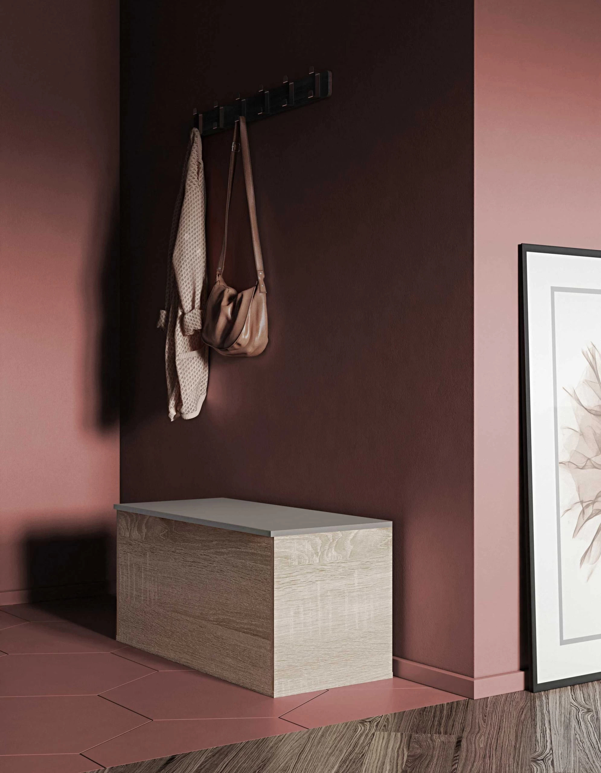Dit bankje is precies wat je nodig hebt in de hal.ย Je kan erop gaan zittenย wanneer je je schoenen aan- en uittrekt en er meteen ook jeย schoenen in opbergenย wanneer je het deksel opent.