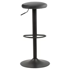 Personaliseer uw woonruimte met deze moderne en industriële barkruk. De Finley barkruk is uitgerust met een hendeltje, om de hoogte te verstellen, en een voetsteun. De gepoedercoate trompetvoet zorgt voor stabiliteit en is gemaakt uit metaal met een afwerking in matzwarte poedercoating. De zitting is gevuld met polyurethaan en bekleed met donkergrijze VIC stof.