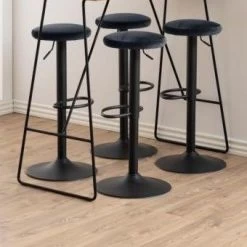 Personaliseer uw woonruimte met deze moderne en industriële barkruk. De Finley barkruk is uitgerust met een hendeltje, om de hoogte te verstellen, en een voetsteun. De gepoedercoate trompetvoet zorgt voor stabiliteit en is gemaakt uit metaal met een afwerking in matzwarte poedercoating. De zitting is gevuld met polyurethaan en bekleed met donkergrijze VIC stof.