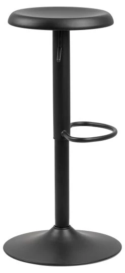 Personaliseer uw woonruimte met deze moderne en industriële barkruk. De Finley barkruk is uitgerust met een hendeltje, om de hoogte te verstellen, en een voetsteun. De gepoedercoate trompetvoet zorgt voor stabiliteit en is gemaakt uit metaal met een afwerking in matzwarte poedercoating. De zitting is ook gemaakt uit metaal afgewerkt met matzwarte poedercoating.