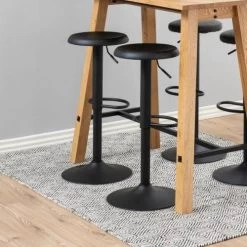 Personaliseer uw woonruimte met deze moderne en industriële barkruk. De Finley barkruk is uitgerust met een hendeltje, om de hoogte te verstellen, en een voetsteun. De gepoedercoate trompetvoet zorgt voor stabiliteit en is gemaakt uit metaal met een afwerking in matzwarte poedercoating. De zitting is ook gemaakt uit metaal afgewerkt met matzwarte poedercoating.