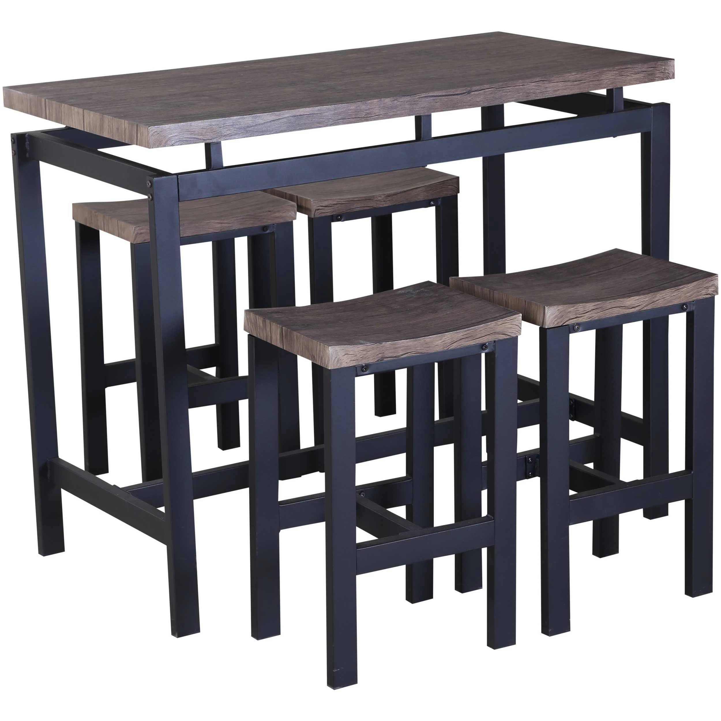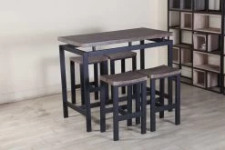 Een mooie bartafel is een origineel alternatief voor een traditionele eettafel! De set Mesin bestaat uit een rechthoekige bartafel met 4 bijpassende barkrukken. De meubels hebben een zwart frame uit metaal, de zittingen en het tafelblad hebben een natuurlijke, donkerbruine kleur.