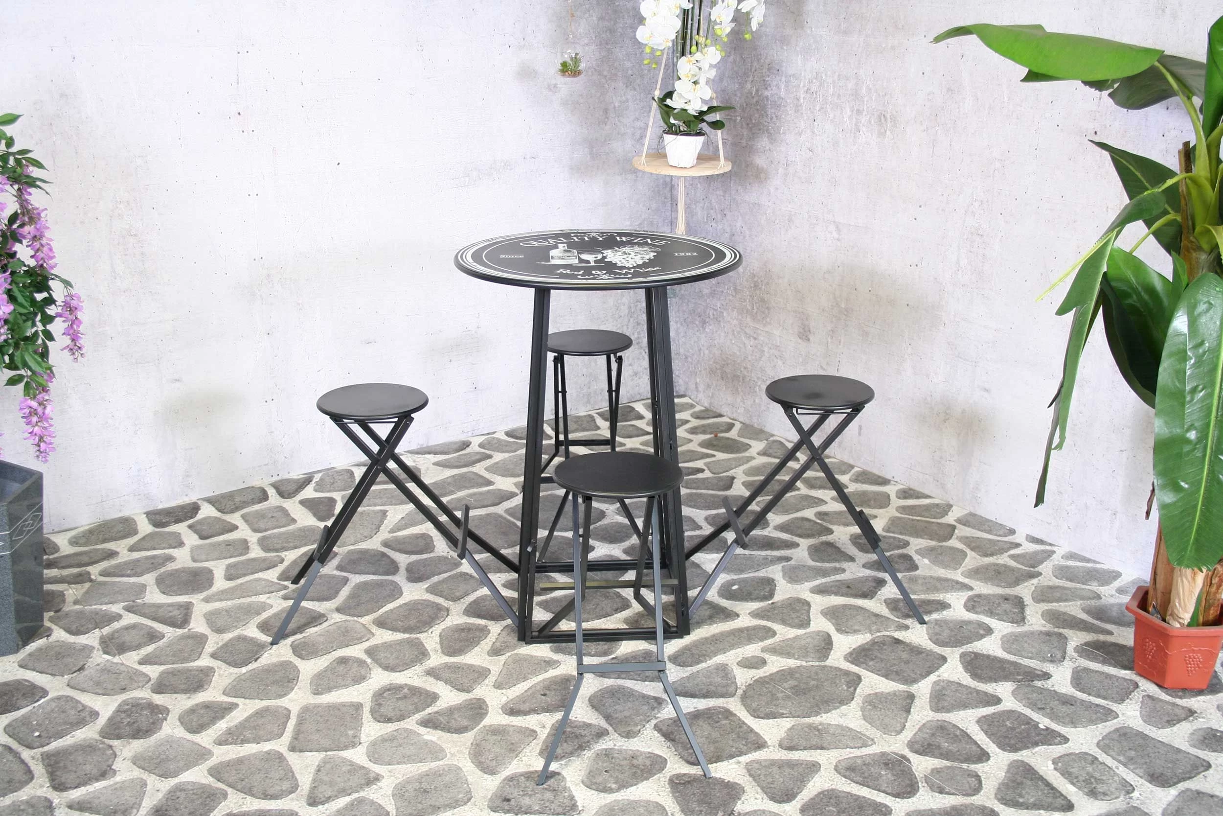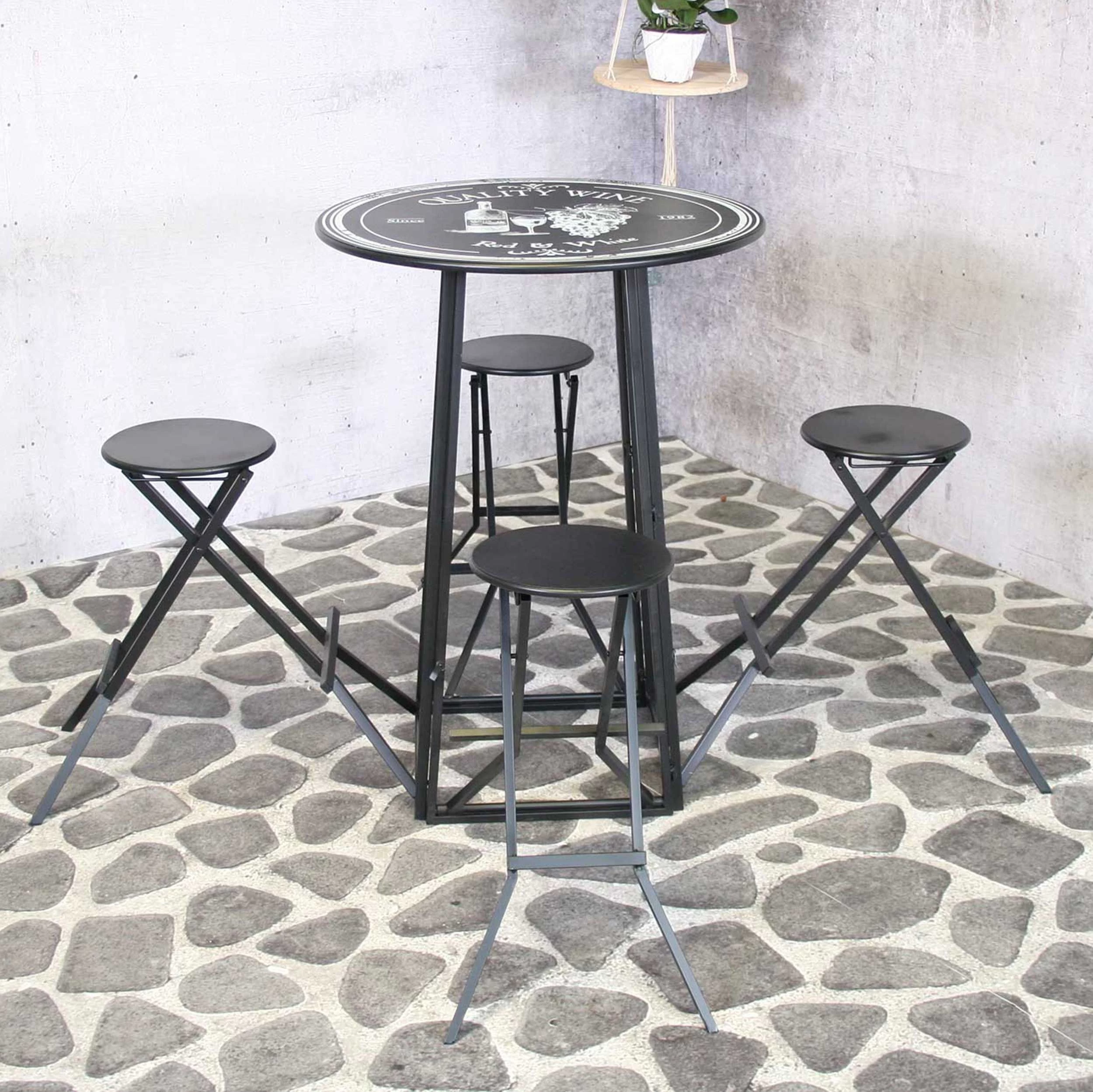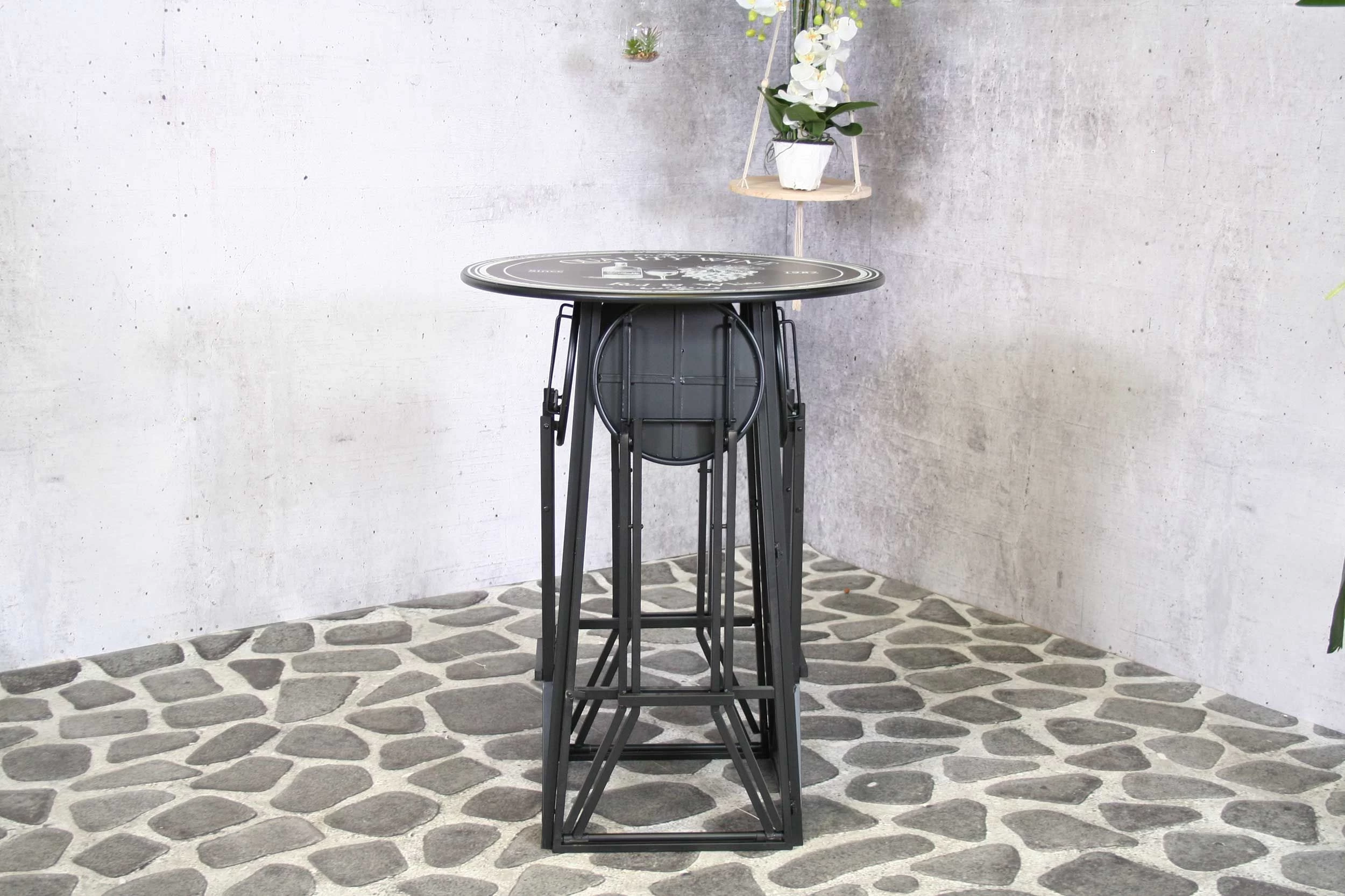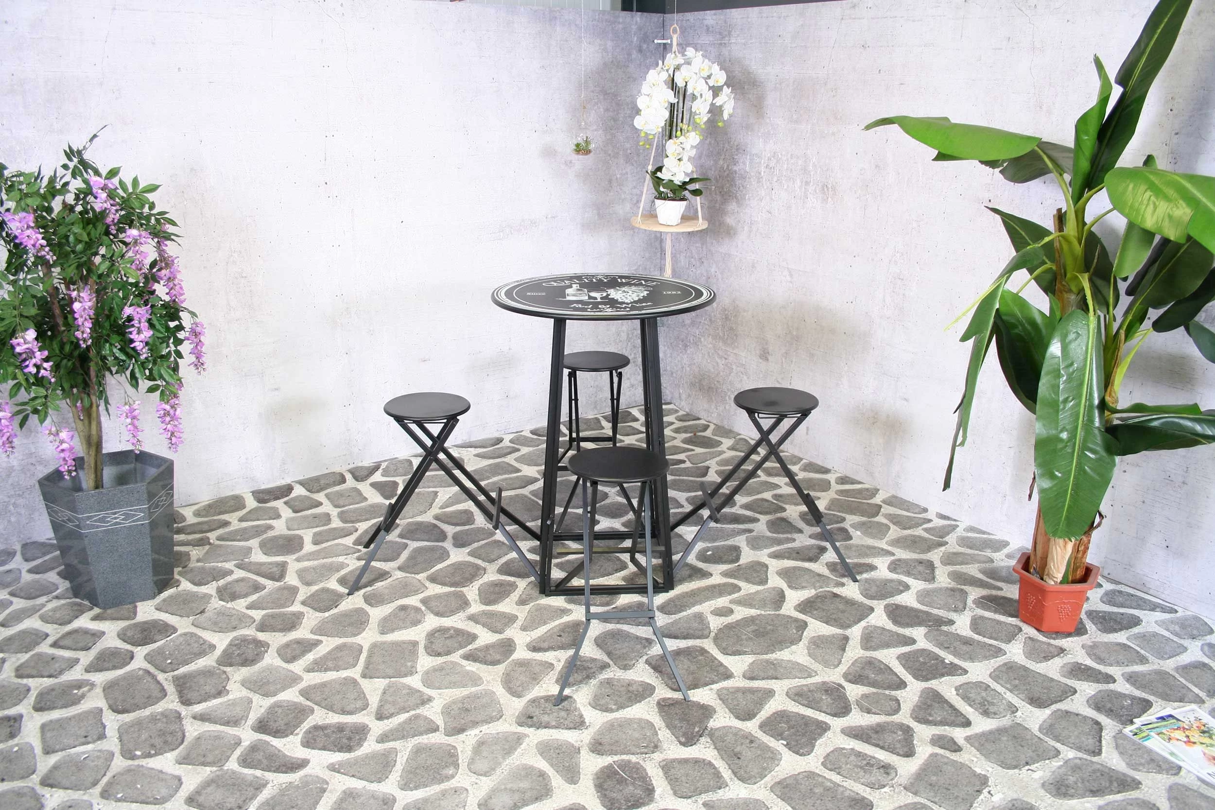 Met de Wine barset tover je je terras razendsnel om in een hippe wijnbar. De barset bestaat uit een toeklapbare bartafel en vier barkrukken en biedt zo plaats aan vier personen. Vervaardigd uit gepoedercoat metaal.