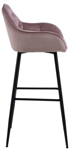 Barstoelen die je hetzelfde comfort bieden als een traditionele stoel zijn soms moeilijk te vinden. Tot nu! Deze barstoelen van de Bridget-collectie verhogen jouw zitcomfort dankzij de armleuningen, rugleuning en voetensteun. Bovendien zien ze er dankzij hun oudroze stoffen bekleding en details ook nog eens bijzonder luxueus uit. De matzwarte poten van gepoedercoat metaal maken het geheel helemaal af.