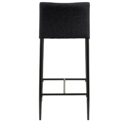 Barstoel Darren met grijze stoffen bekleding en zwarte metalen poten. Met voetensteun.Â