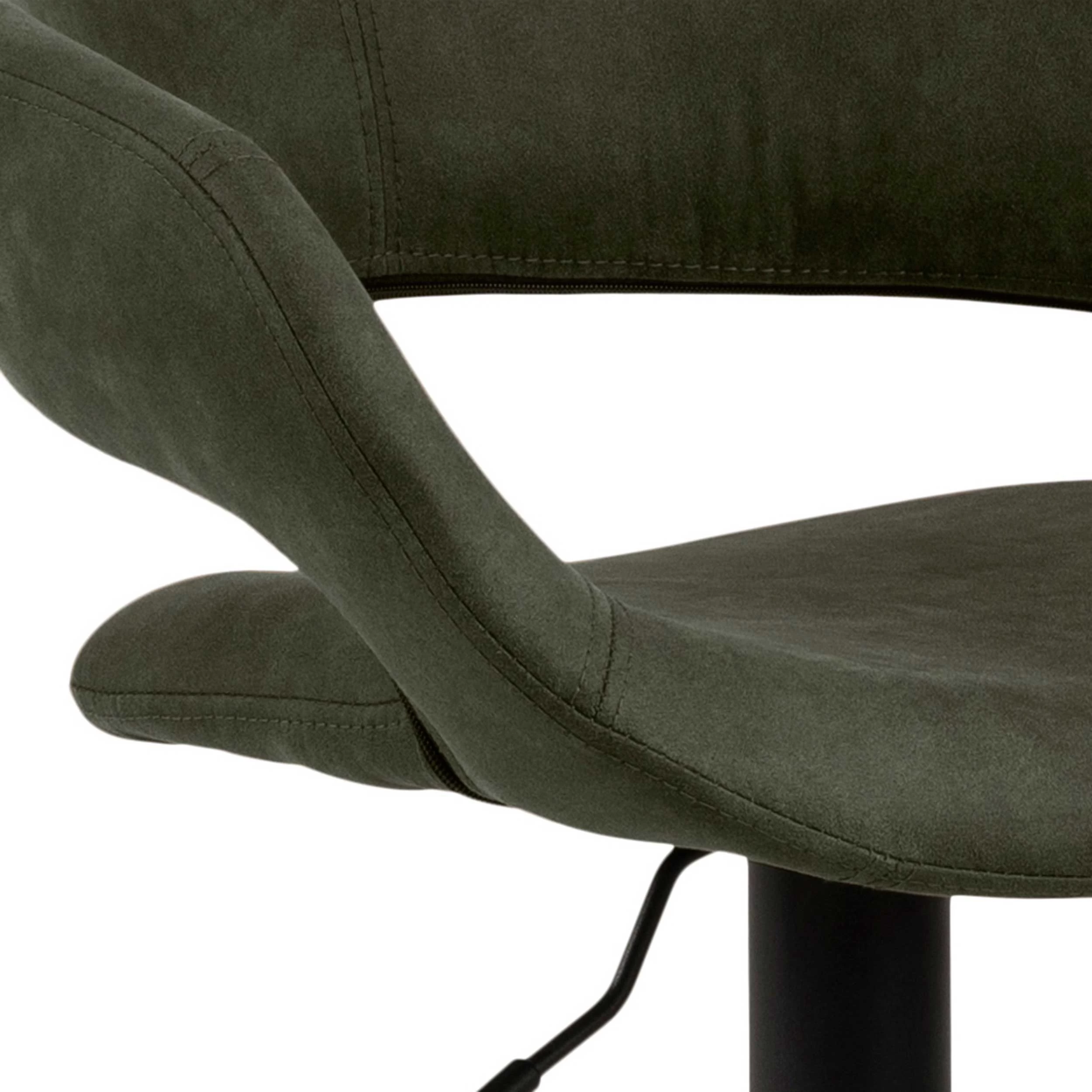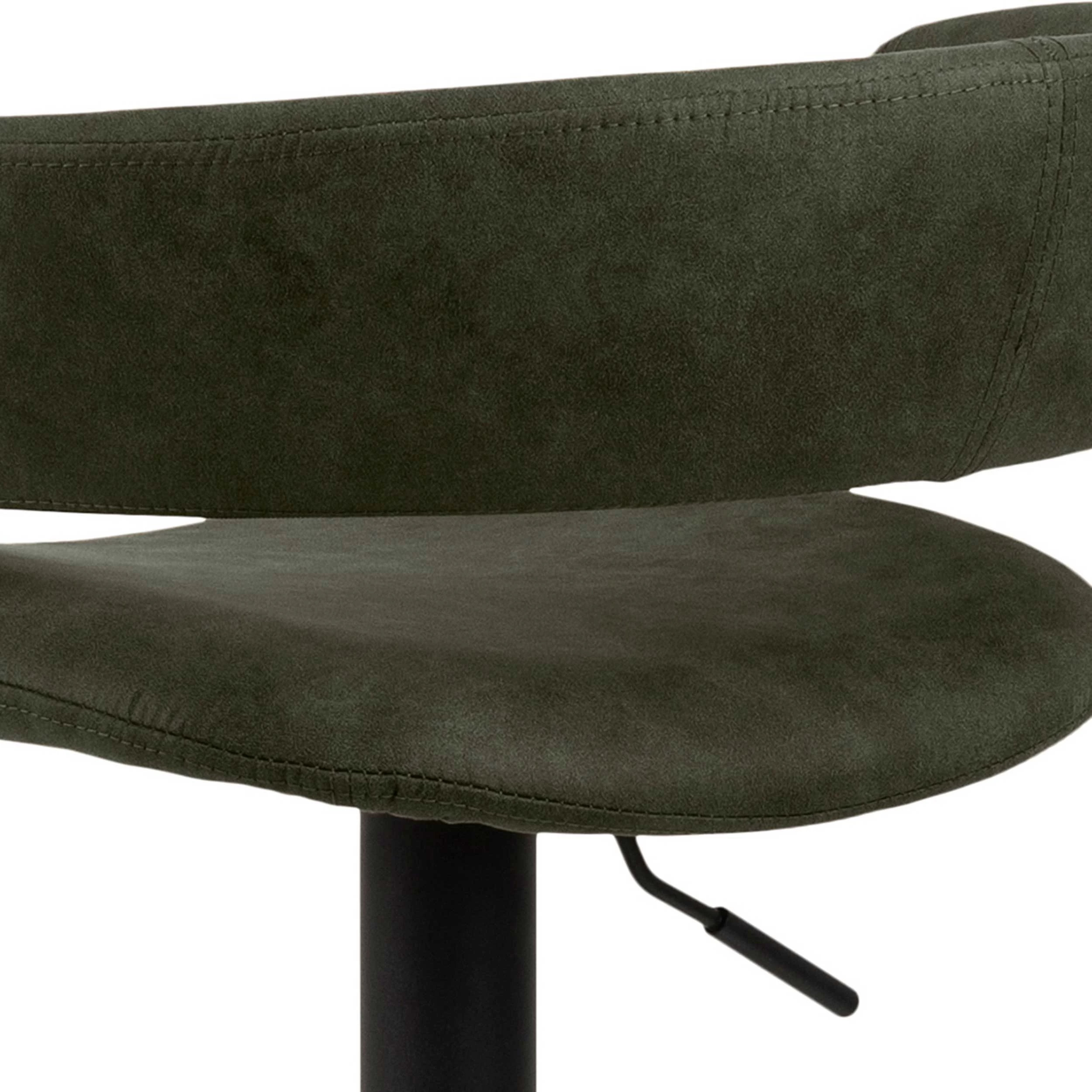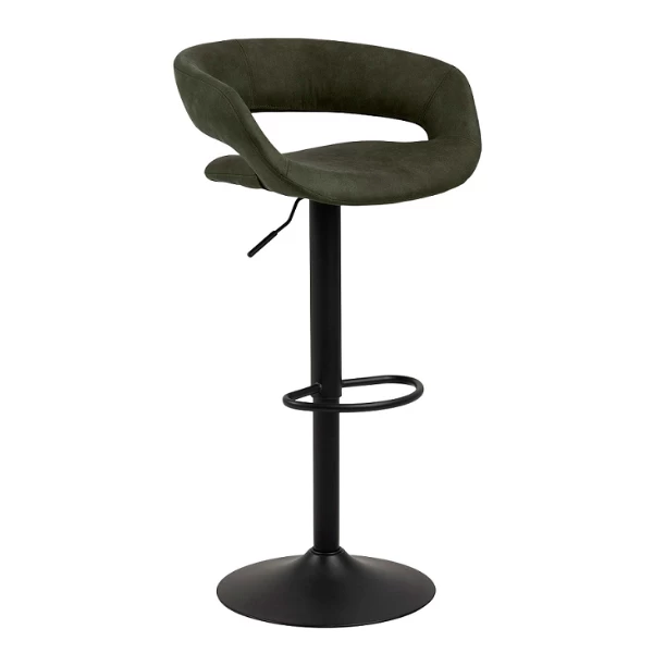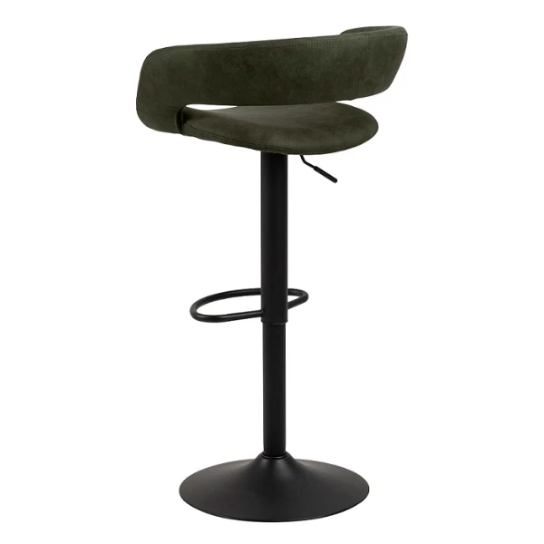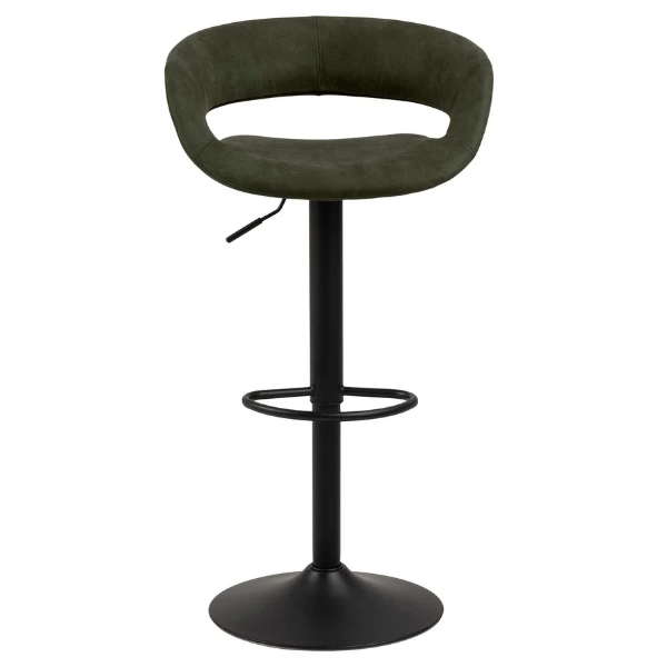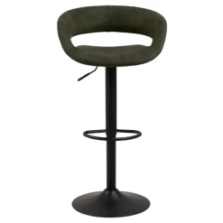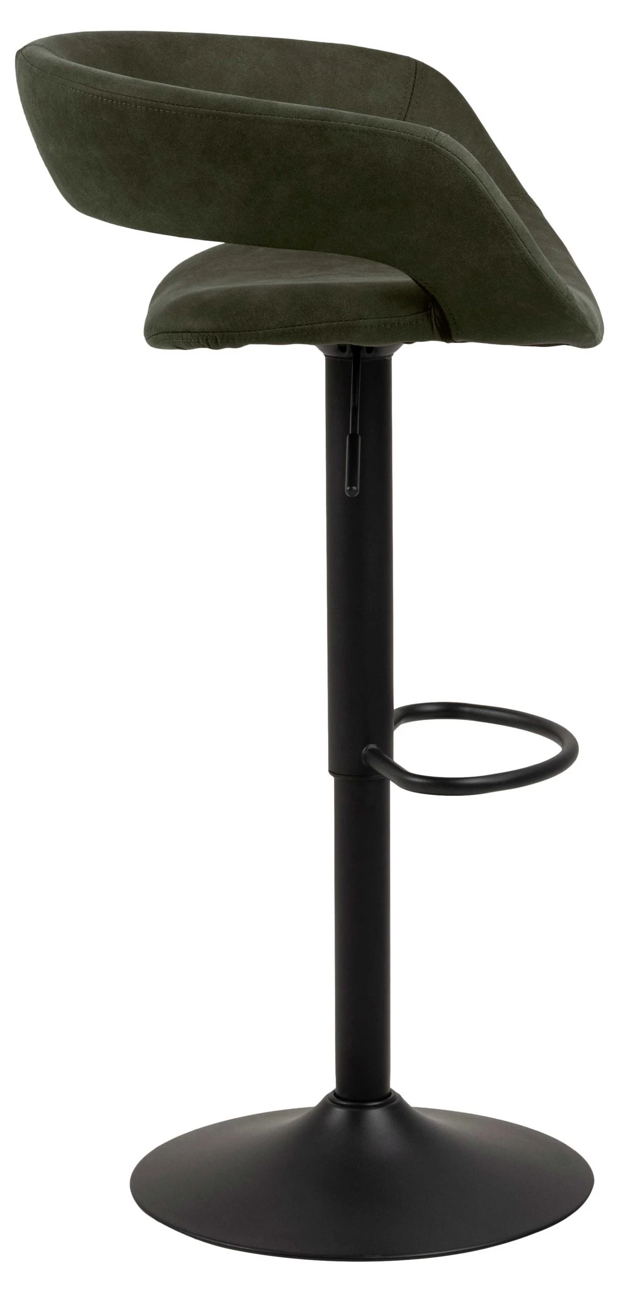 Olijfgroene barstoel Dusty met matzwarte voet en voetensteun. In hoogte verstelbaar.