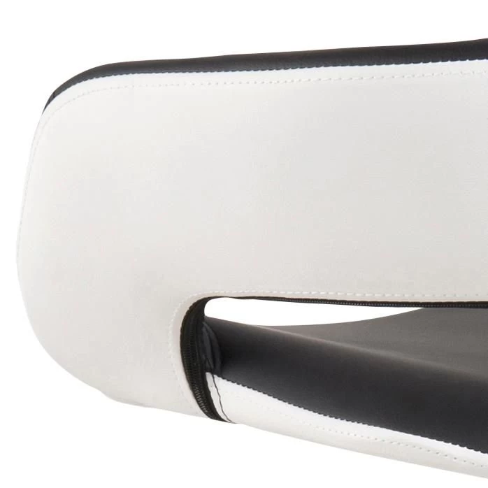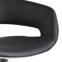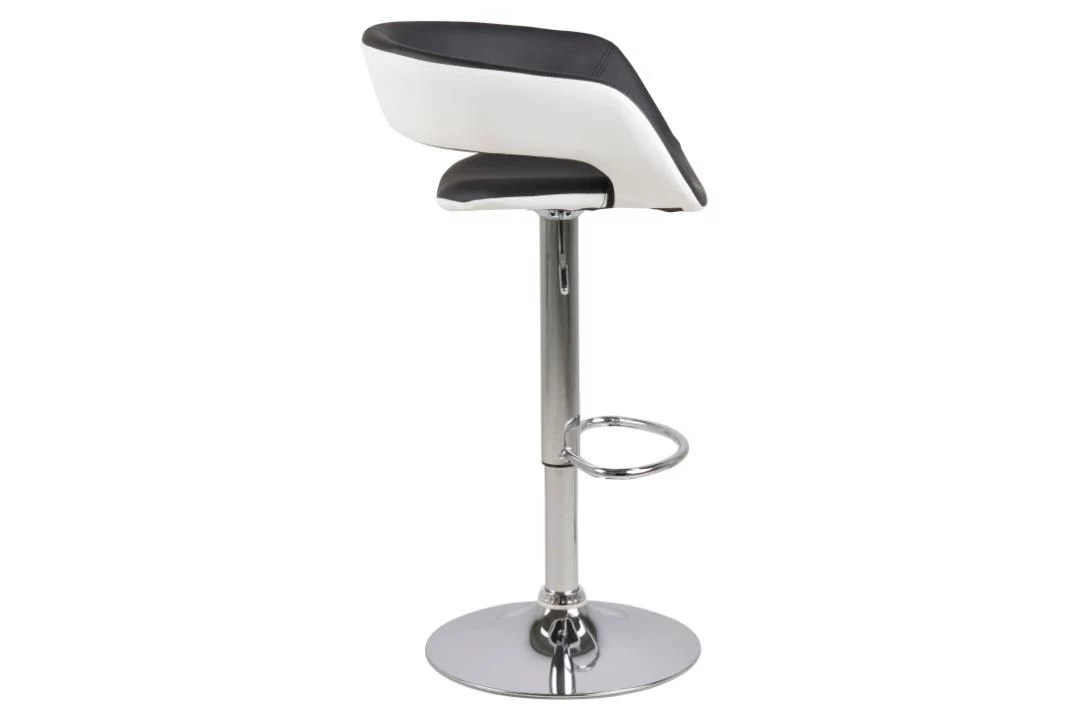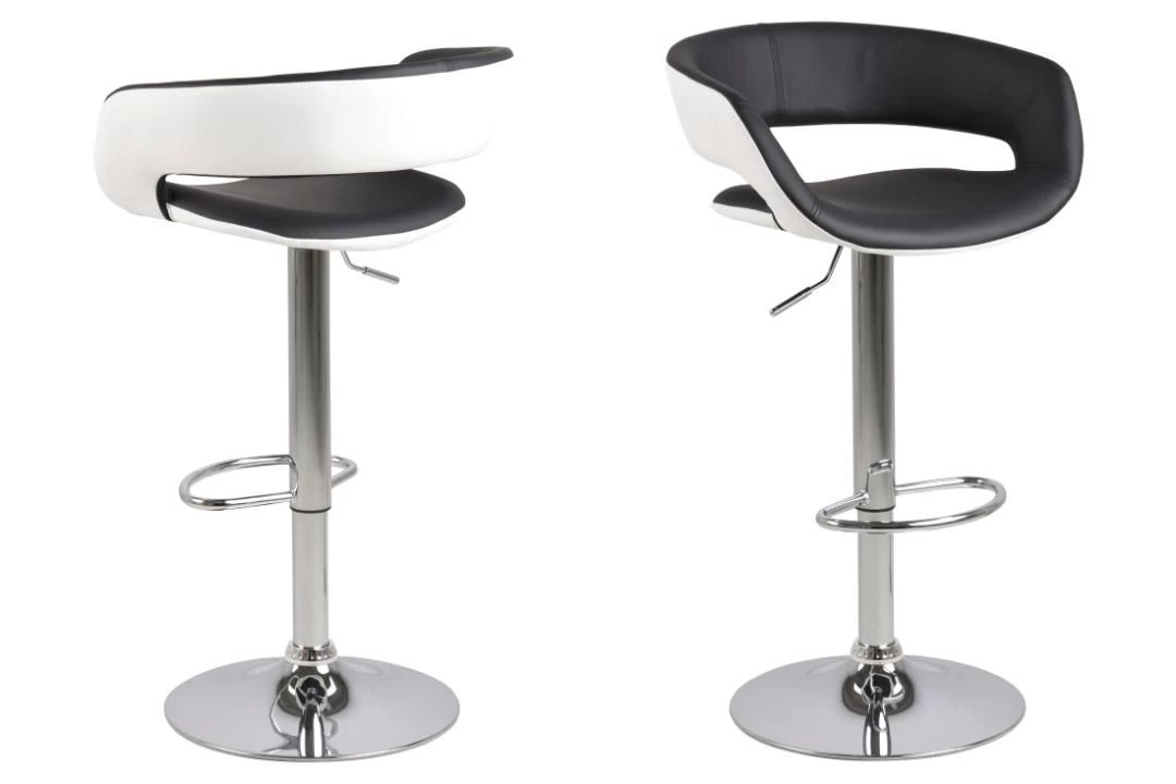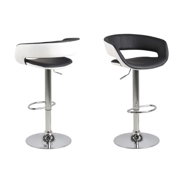 Deze barstoelen van de Dusty-collectie zorgen voor een trendy toets in je interieur. De stoel heeft een originele zitting die is overtrokken met een witte en zwarte kunstleer. Deze barstoelen hebben een metalen ronde voet. Om volledig in jouw comfort te voorzien, is de barstoel uitgerust met een voetensteun en kan je ook de zithoogte aanpassen.