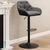 Deze barstoel is uitgerust met een voetensteun. De zitting (zithoogte 65 cm) is bekleed met grijs kunstleder, wat een luxueuze uitstraling geeft aan de stoel en dus ook aan jouw bar!