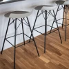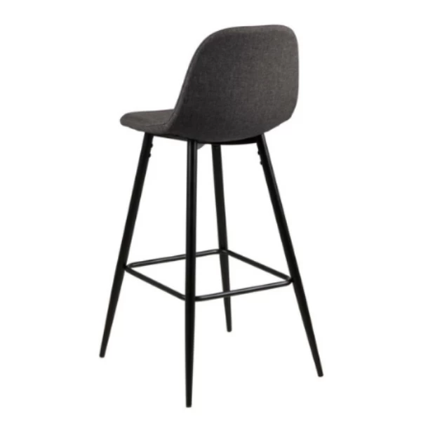Barkruk Wilhelm, samengesteld uit donkergrijze stof en metalen poten in zwart.