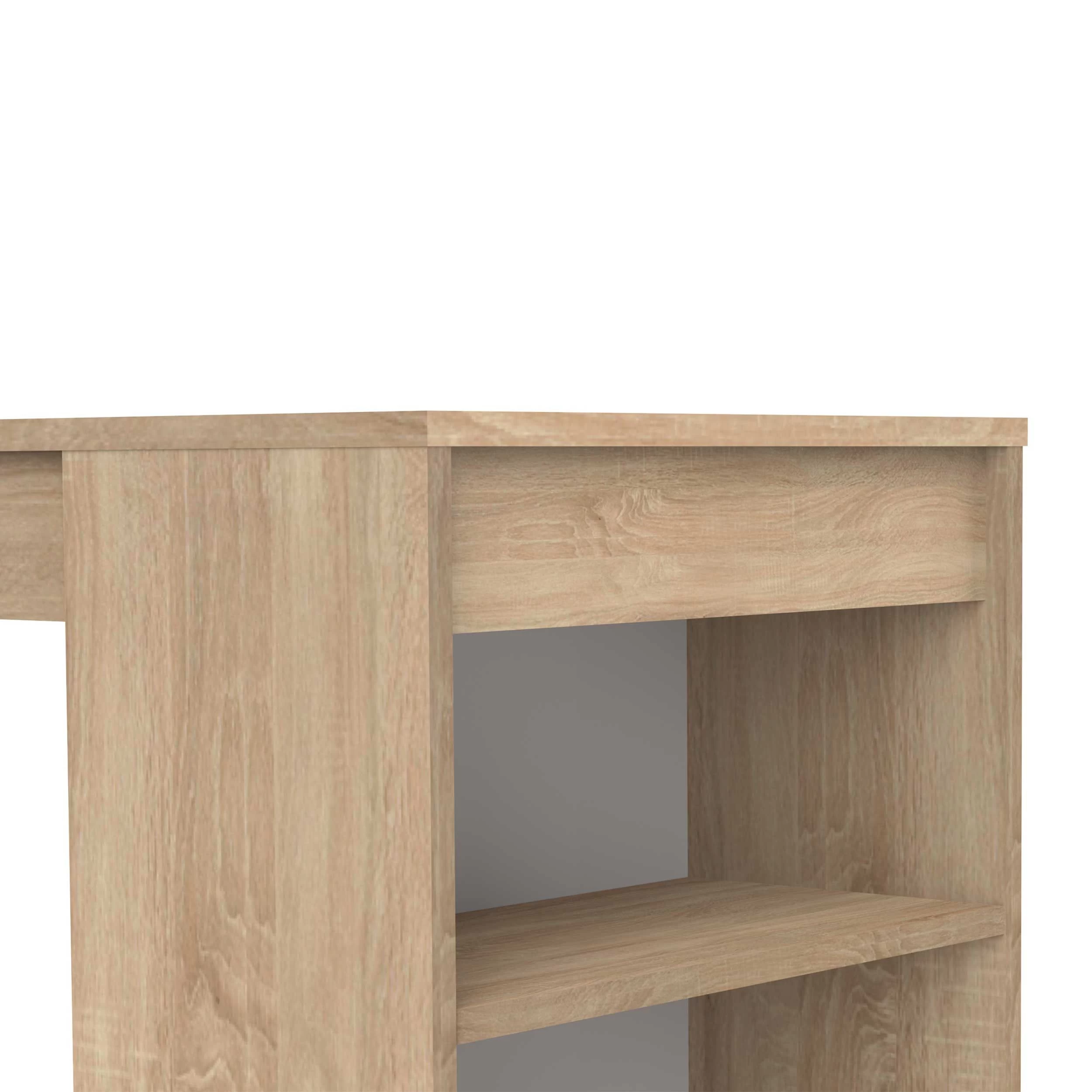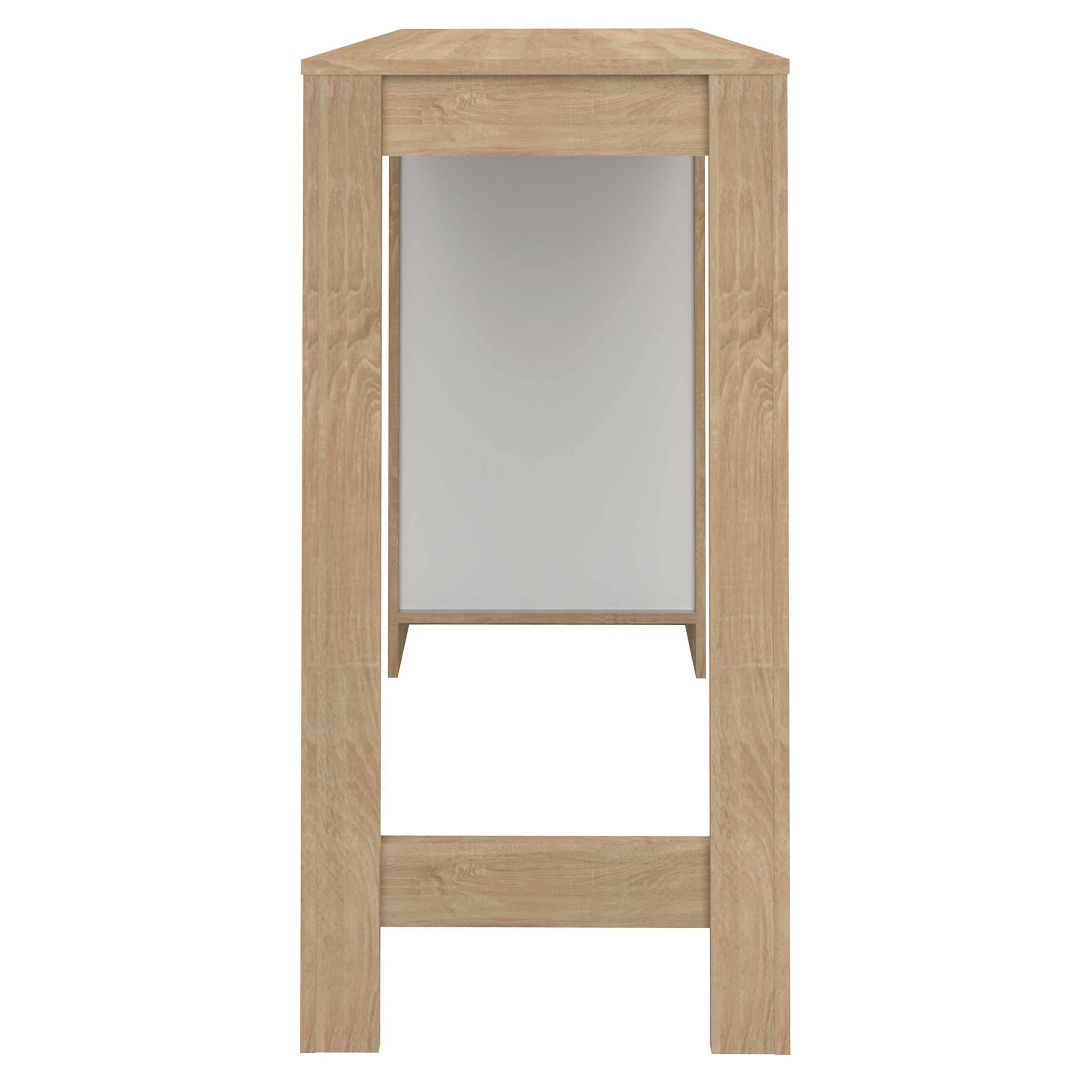 Deze bartafel is ideaal in kleine keukens of studio’s. De tafel wordt aan de muur bevestigd en is geschikt voor 2 personen. Aan de zijkant vind je extra opbergruimte waar je over 3 legplanken beschikt.