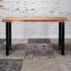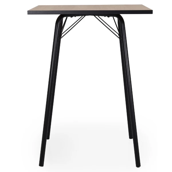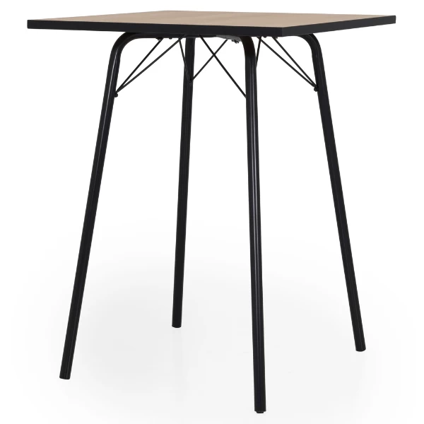 Bartafel Flow, 80×80 cm. Met een tafelblad in eikendecor en zwarte, stalen poten.