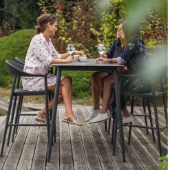 Deze bartafel Luz bestaat uit antracietkleurige aluminium tafelpoten en een antracietkleurig keramisch tafelblad. Het minimalistische ontwerp past perfect binnen de Scandinavische woontrend. De tafel is geschikt voor 4 tot 6 personen en is de ideale plaats om te genieten van het mooie weer onder het genot van een aperitiefje. Kijk zeker ook verder in ons assortiment voor de perfecte barstoel bij de tafel.