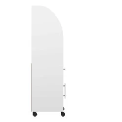 Bijzetkast Jeanine op wieltjes, gemaakt van spaanplaat. Bevat 3 legplanken, 2 deuren en een lade.ย