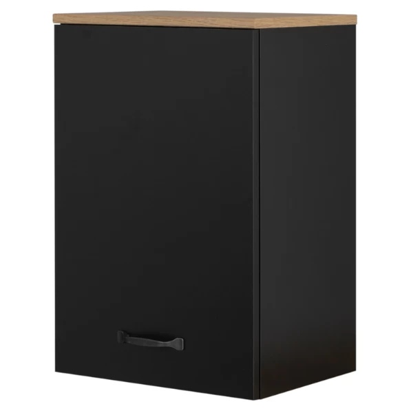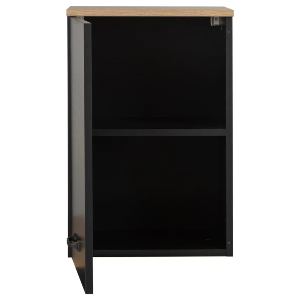 Bovenkast voor keuken Manno 40x32x60cm uit spaanplaat. Met 1 deur. Afwerking in Helvezia eik en zwart.