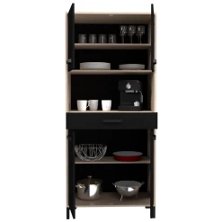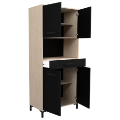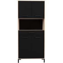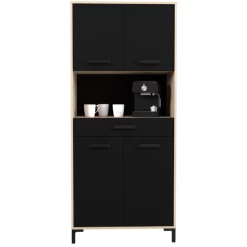 Buffetkast Felicity, uitgerust met vier deuren en één lade. Gemaakt uit spaanplaat met een afwerking in het zwart en eik decor.