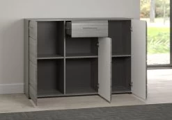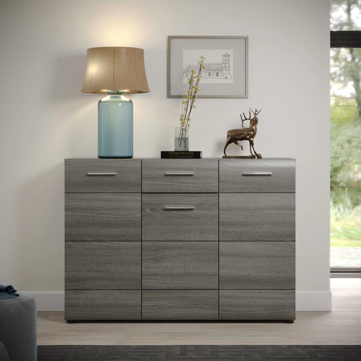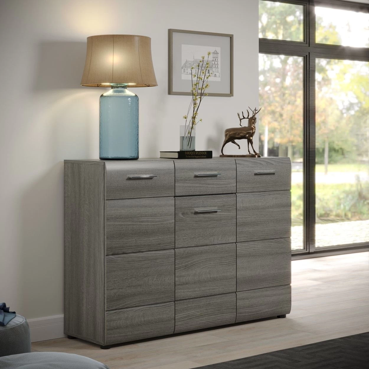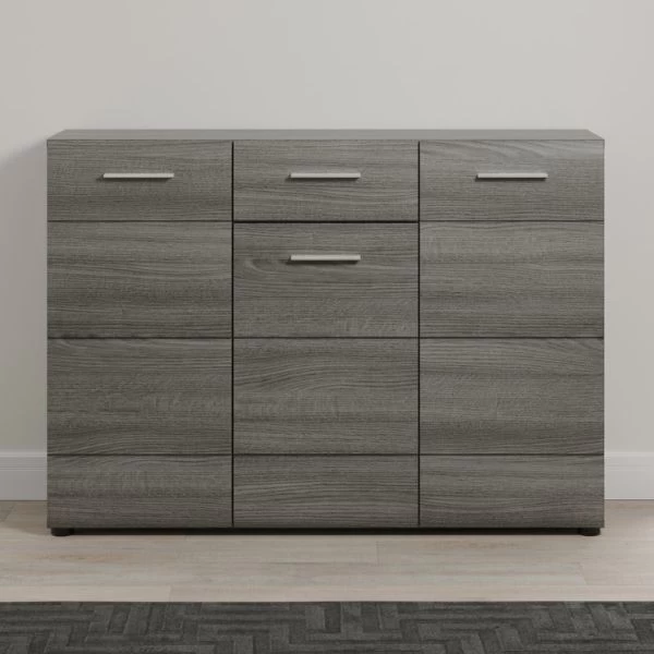 Het ontwerp van deze ladekast wordt gekenmerkt door het rookzilverkleurige corpus in Sardegna-decor, waardoor hij prachtig past bij je andere meubels. De chroomkleurige handgrepen met glanzende afwerking maken de strakke en moderne look compleet.