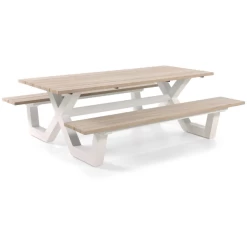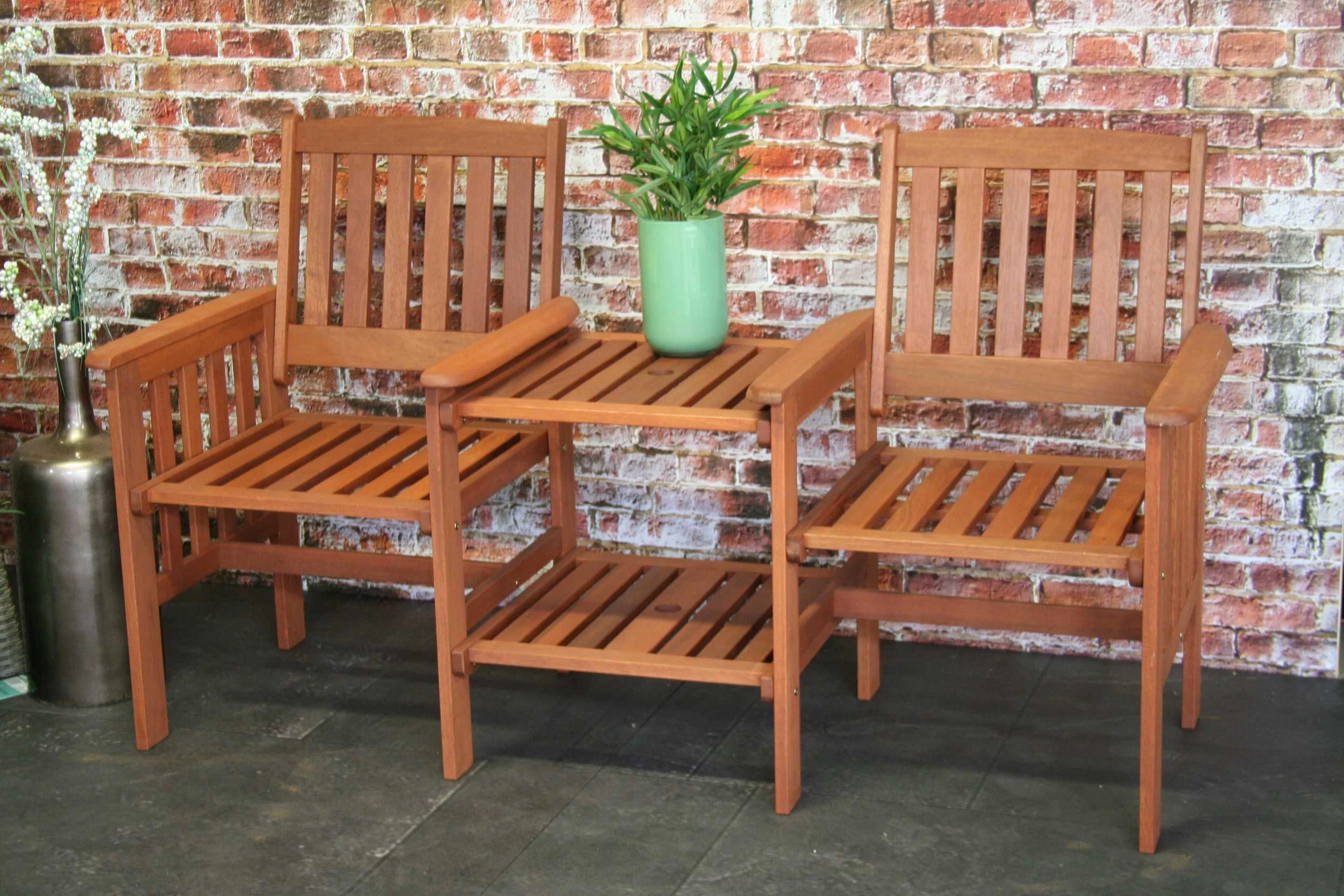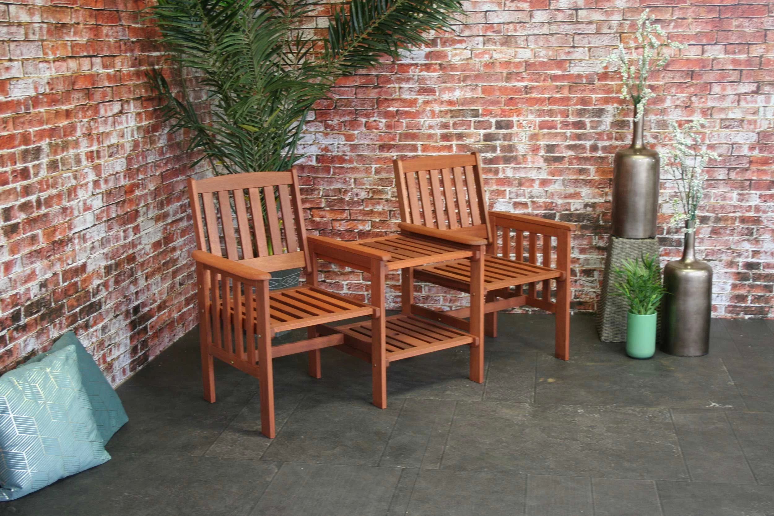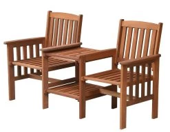 Geniet met twee van een zonnige dag in deze duobank. Het Tennessee bankje is gemaakt van meranti hardhout en is in het midden uitgerust met een handig tafeltje. Plaats hierop alles wat je nodig hebt voor een ontspannende dag: een goed boek, een verfrissend drankje, je zonnebril… Aan deze bank kan ook een parasol worden toegevoegd.