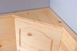 De meubelen zijn vervaardigd uit massief hout en werden vernist voor een mooie afwerking. Let zeker op de verfijnde details. Goed om te weten: je kan de zitgedeeltes van de banken openklappen. ย
