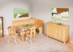 Deze eethoek set bestaat uit een eettafel, 2 stoelen en een hoekbank. Deze set neemt je meteen mee naar het interieur van een gezellig vakantiehuisje in Oostenrijk. Gezelligheid en warmte, dat is exact wat deze reeks uitstraalt.