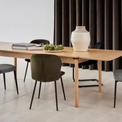 Creรซer een gevoel van balans, rust en harmonie in jouw eetkamer met deze olijfgroene eetkamerstoelen. Niet alleen zijn prachtige kleur, maar ook zijn zachte bekleding uit corduroy maakt deze stoel tot een must-have. Door het gebruik van ribfluweel verkleurt de bekleding bijna niet en blijft de stoel dus extra lang mooi. Eetkamerstoel Evelyn beschikt bovendien over 4 zwarte metalen poten die voor voldoende stabiliteit zorgen. De stoelย is ook nog beschikbaar met een currygele of grijze bekleding.ย