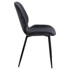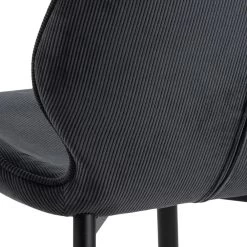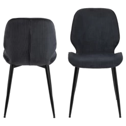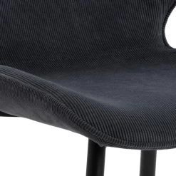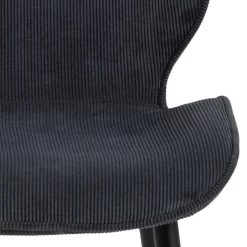 Eetkamerstoel Femke met een antracietkleurige bekleding uit corduroy (ribfluweel) en zwarte metalen poten.ย
