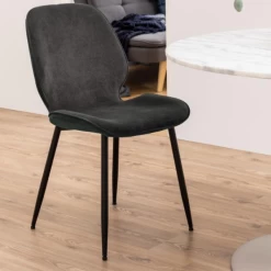 Eetkamerstoel Femke met een antracietkleurige bekleding uit corduroy (ribfluweel) en zwarte metalen poten.ย