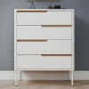 Commode Turbo met 1 legplank, 2 deuren en 2 laden in hoogglans wit. Gemaakt van spaanplaat met decor van oude eik.