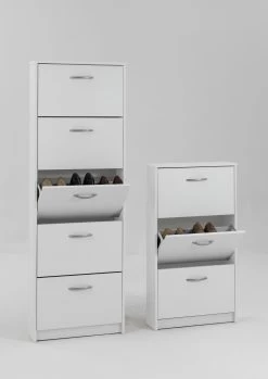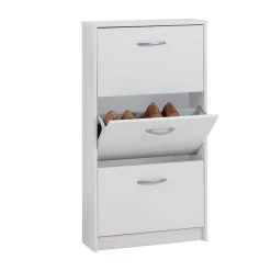 Weg met rondslingerende schoenen in huis! De witte schoenenkast Step met 3 laden biedt voldoende plaats om al jouw schoenen op te bergen. Is je schoenencollectie te uitgebreid voor deze kast? Dan kies je gewoon voor de versie met 5 laden!
