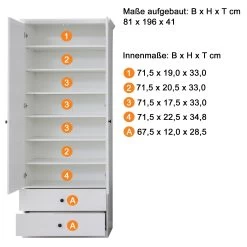 Als je deze kledingkast koopt, ontvang je hem in gedemonteerde staat, samen met montage-instructies en al het benodigde montagemateriaal. Zo kun je hem gemakkelijk zelf in elkaar zetten en bespaar je tijd en geld. Let op: bij de levering zijn geen decoratieartikelen inbegrepen.