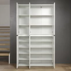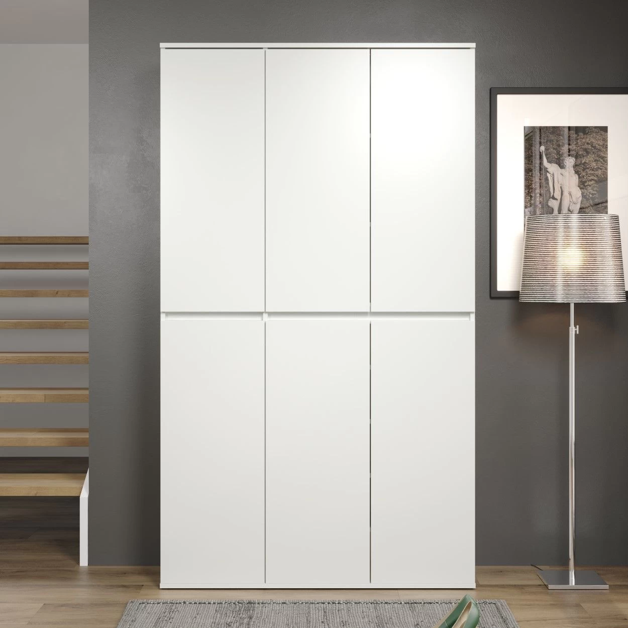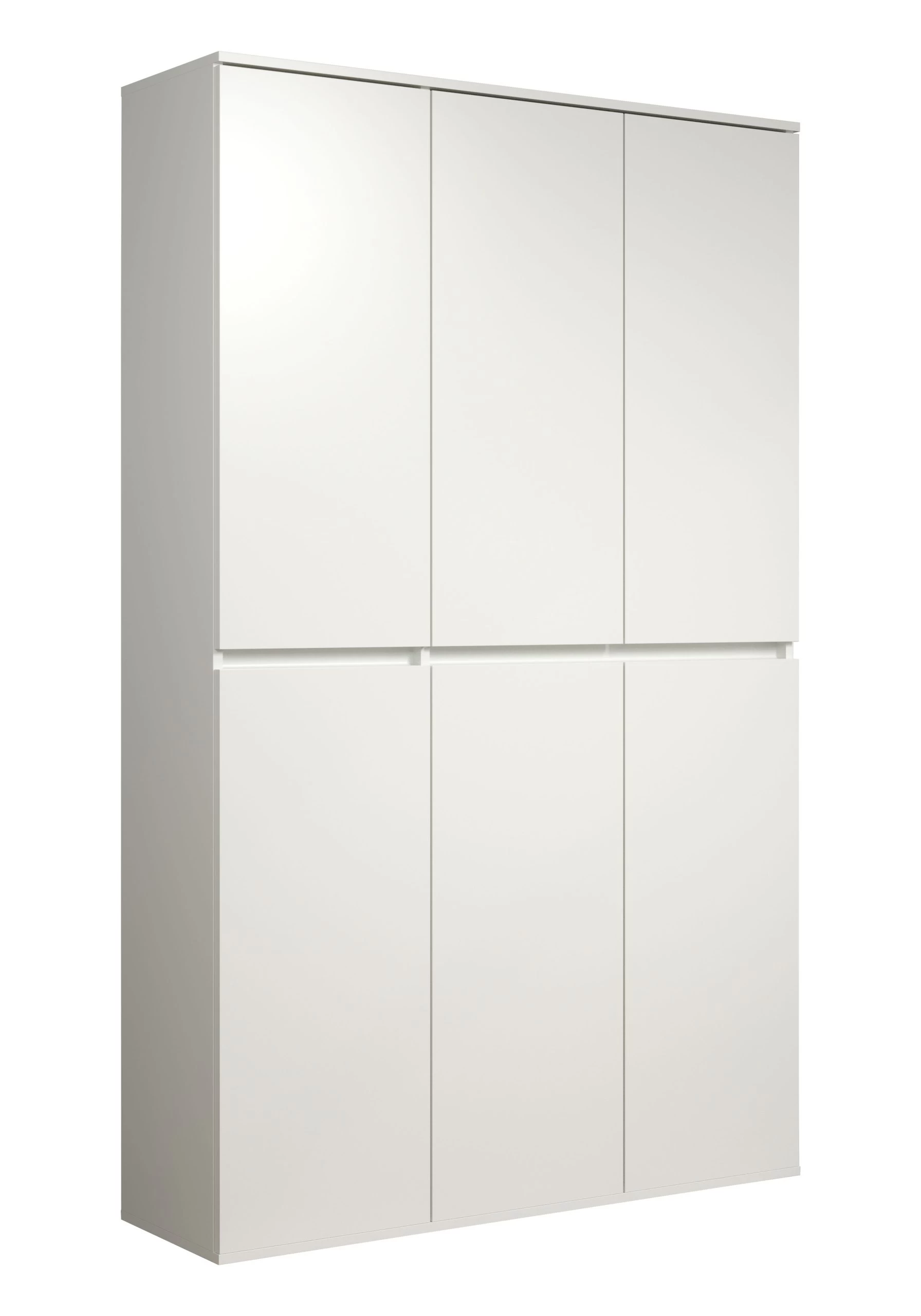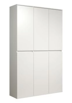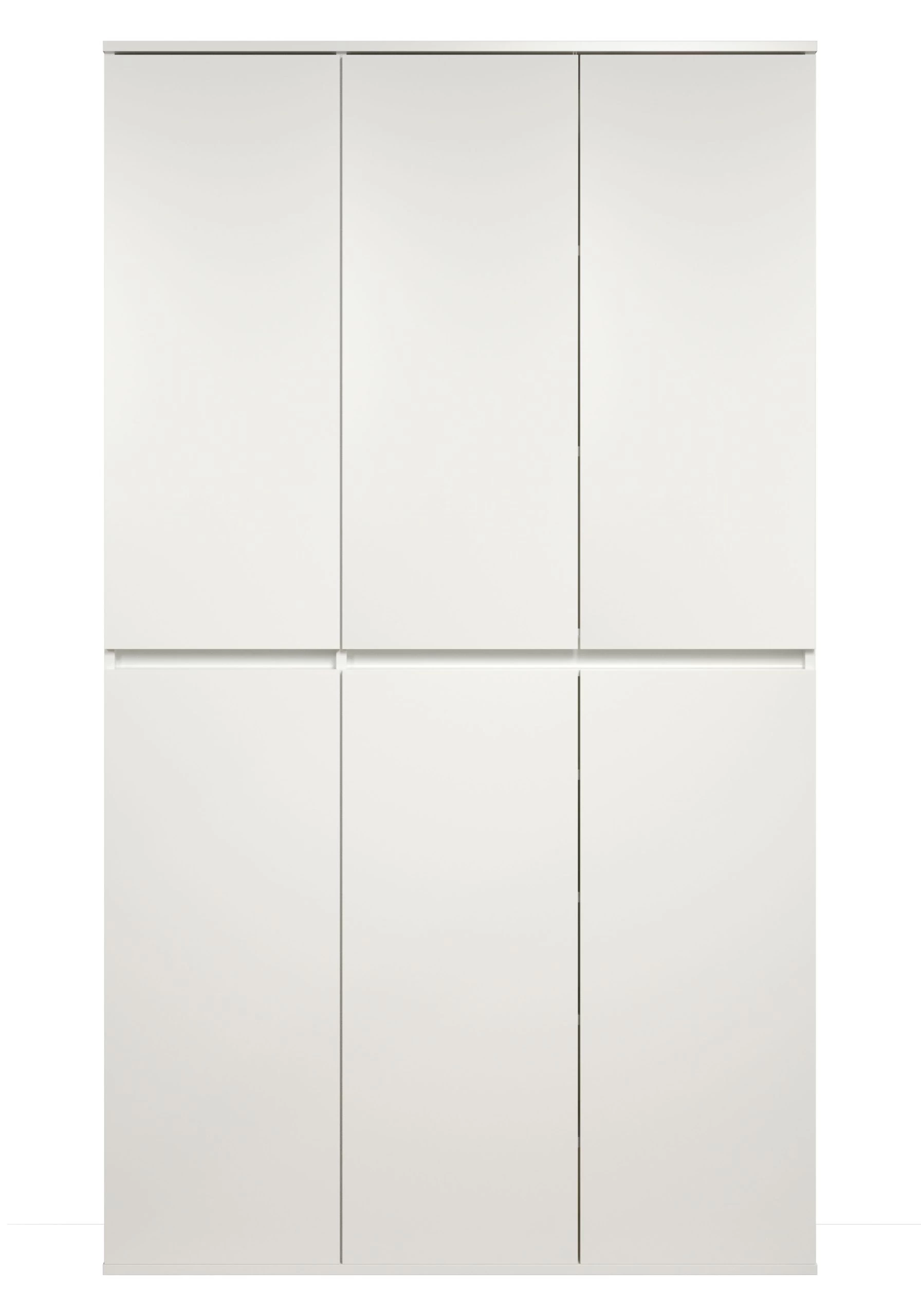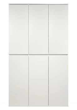 De multifunctionele kledingkast Nevada maakt deel uit van onze productgroep multifunctionele kasten. Hij heeft geen volledig uittrekbare loper of soft-close functie. Hij heeft echter wel een strakke witte kleur en een greeploos ontwerp, waardoor hij een trendy accent aan je interieur toevoegt.