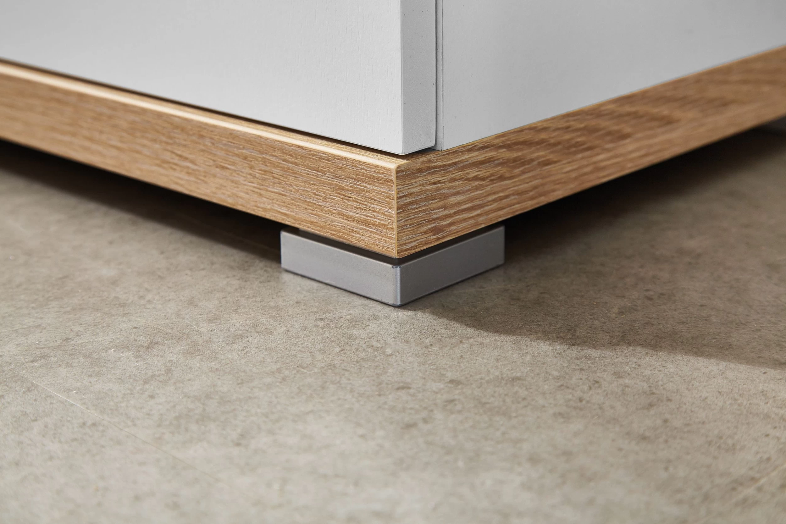 De Tosun-collectie in wit met accenten in eikdecor zorgt voor een moderne, maar natuurlijk warme look in jouw inkomhal. Deze mooi ogende, maar tegelijkertijd ruimtebesparende oplossing past in zowat elke woning. De twee meter hoge garderobekast is uitgerust met een uittrekbare kledingroede en twee legplanken, ideaal voor om je jassen en accessoires in op te bergen. De deuren zijn gemakkelijk te openen met behulp van de metalen handgrepen.