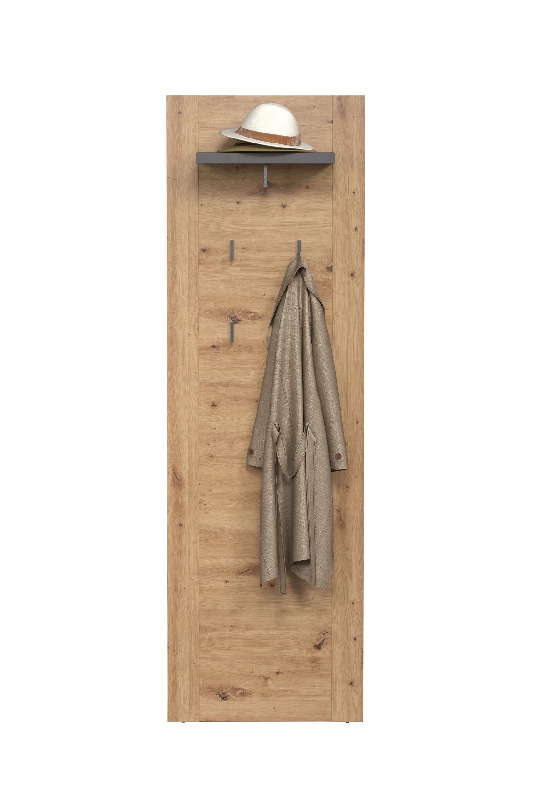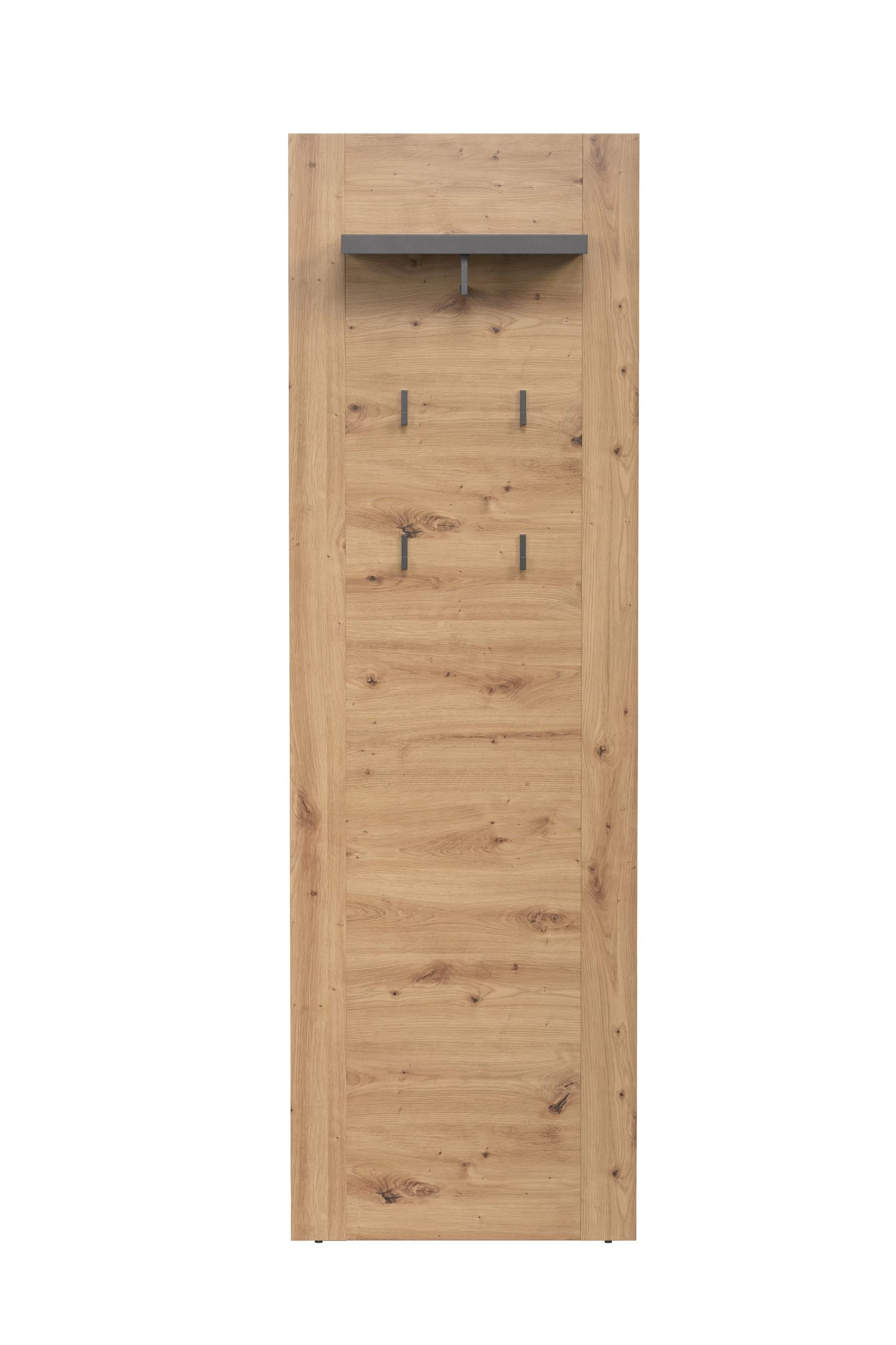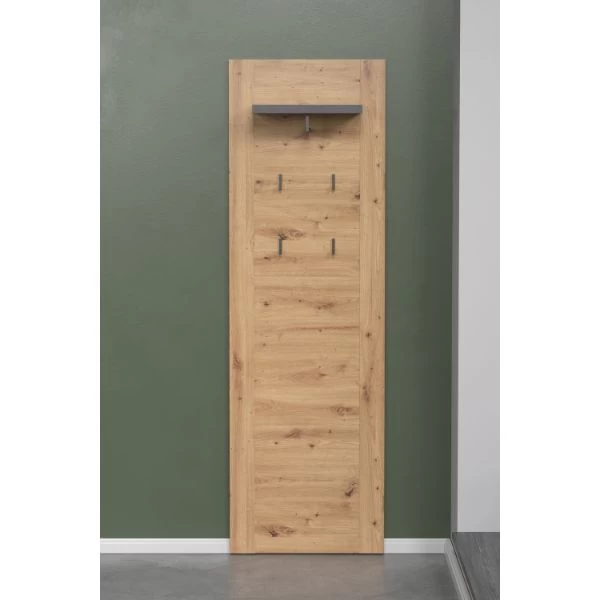 Transformeer je gang of hal in een georganiseerde en stijlvolle ruimte met ons wandpaneel uit de Follow-serie. Met afmetingen van 62 x 26 x 199 centimeter biedt dit paneel de perfecte oplossing voor het ophangen van jassen, tassen en sleutels, terwijl het ook een handige bovenste plank heeft voor decoratieve items.