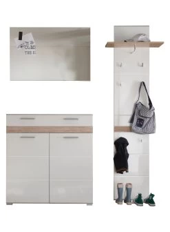 De Set-One-combinatie is de perfecte oplossing voor al je inrichtingsbehoeften, ongeacht de stijl die je kiest. Ontworpen met een decoratieve folie, is het oppervlak zeer veerkrachtig en duurzaam. De romp in licht-eiken San Remo-decor en het front in een prachtige hoogglans afwerking maken van dit meubel een echte showstopper. Dit product maakt deel uit van een set, wat zorgt voor een samenhangende look in je hele ruimte. Met zijn Europese oorsprong kun je vertrouwen op de kwaliteit en het vakmanschap. Let op: de Set-One-combinatie heeft geen soft-close functie. Verfraai je huis met deze chique en stijlvolle garderobemeubelen.