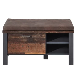 Halbankje Carthago 94x40x49cm uit spaanplaat met een look van oude eik. Met zitkussen in kunstleer en opberglade.