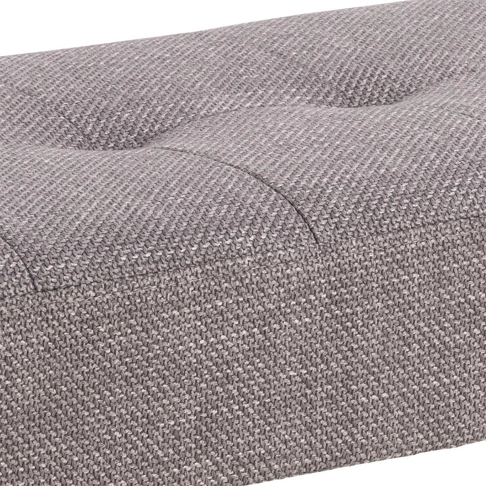De Gloria bank: Elegante grijze Basel stof, duurzaam ruw gepoedercoat stalen onderstel, getuft ontwerp. Comfortabel en stijlvol zitmeubilair.
