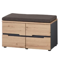 Halbankje Medina 80x38x49cm uit spaanplaat met afwerking in eiklook. Met zitkussen en twee deuren.