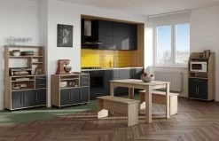 Dit compacte meubel met een eikdecor biedt je alles wat je nodig hebt in de hal: een spiegel, een roede om je jassen weg te hangen en een kastje met 2 witte legplanken waarop je je schoenen of handtas kunt plaatsen. Het kastje kan je bovendien ook elders plaatsen, het is niet vastgemaakt aan het hoofdmeubel.