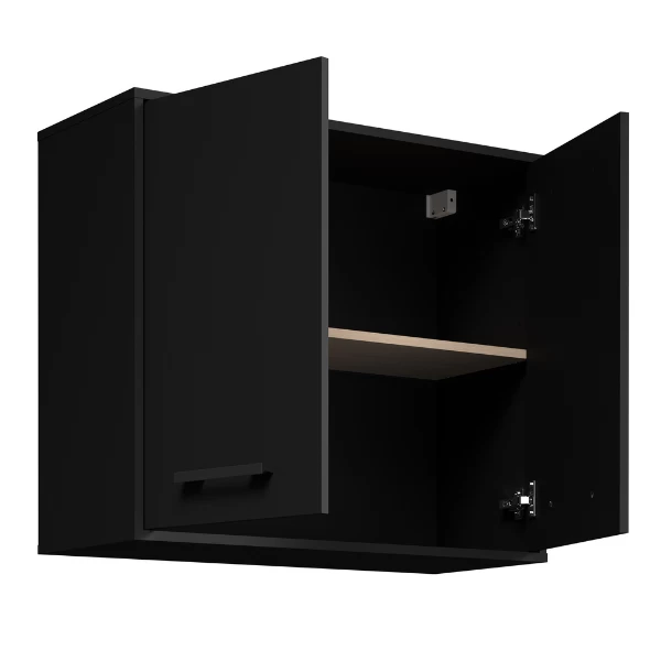 Keukenhangkast Cobalt 80x32x68.5cm uit spaanplaat met afwerking in zwart en eikdecor. Uitgerust met een legplank in eikdecor.