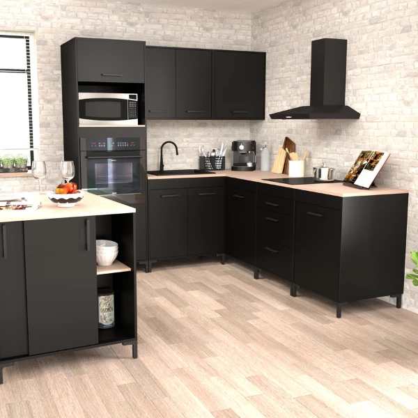 De keuken is een uitdagende ruimte om in te richten. Met de kastjes uit de reeks Cobalt stel je zelf je keuken samen. Het stoere ontwerp past volledig in de industriële New York-loft stijl. Deze hangkast is gemaakt in spaanplaat met afwerking in zwarte melamine. De kast is voorzien van een legplank in eikdecor en biedt zo heel wat praktische opbergruimte. Ontdek alle mogelijkheden uit de reeks Cobalt op onze website.