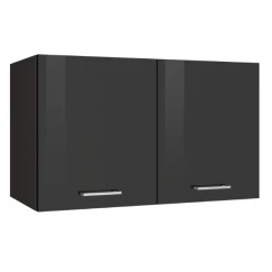 Keukenhangkast Ragnar 100x34x57cm uit MDF met afwerking in hoogglans antraciet. Met metalen handgrepen.