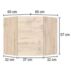 Hoekkast Sorrella 30x60x200cm uit spaanplaat met metalen handgrepen. Afgewerkt met melamine in eikdecor en antraciet. Met 1 deur en 1 legplank.