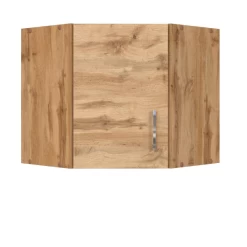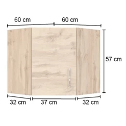 Hoekkast Sorrella 30x60x200cm uit spaanplaat met metalen handgrepen. Afgewerkt met melamine in eikdecor. Met 1 deur en 1 legplank.