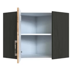De keuken is het hart van het huis. Het is dus belangrijk om keukenkasten te kiezen die volledig aan je wensen voldoen. Deze hoekkast is gemaakt uit spaanplaat, afgewerkt met melamine in eikdecor en grafiet. De metalen handgrepen zijn een leuk detail. Achter de deur is een legplank voorzien, waardoor je opbergruimte creëert voor allerlei keukenbenodigdheden. Ideaal voor een keuken in een L-vorm. De collectie Sorrella bestaat in verschillende uitvoeringen. Stel zelf je droomkeuken samen.