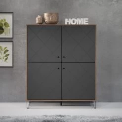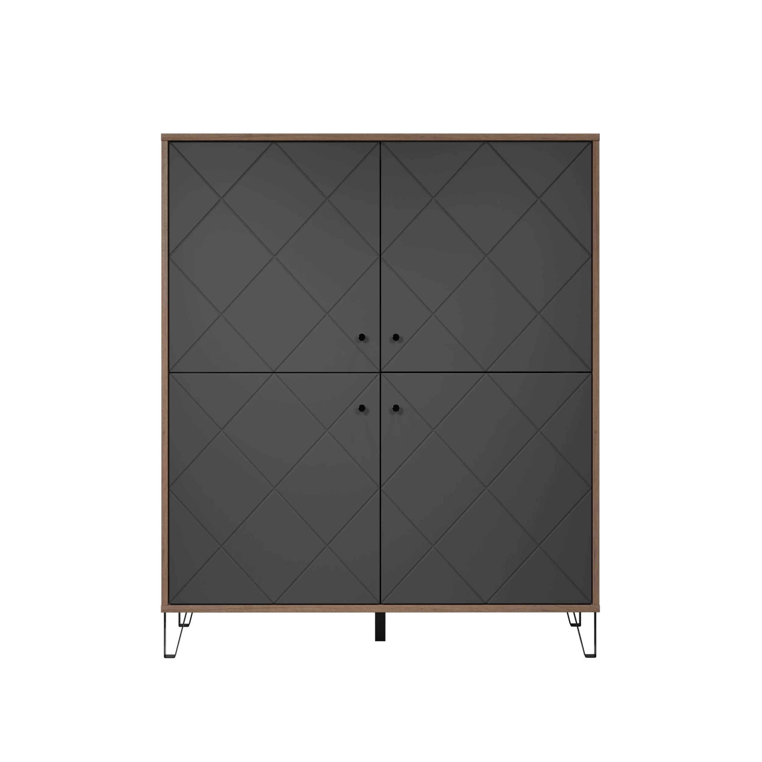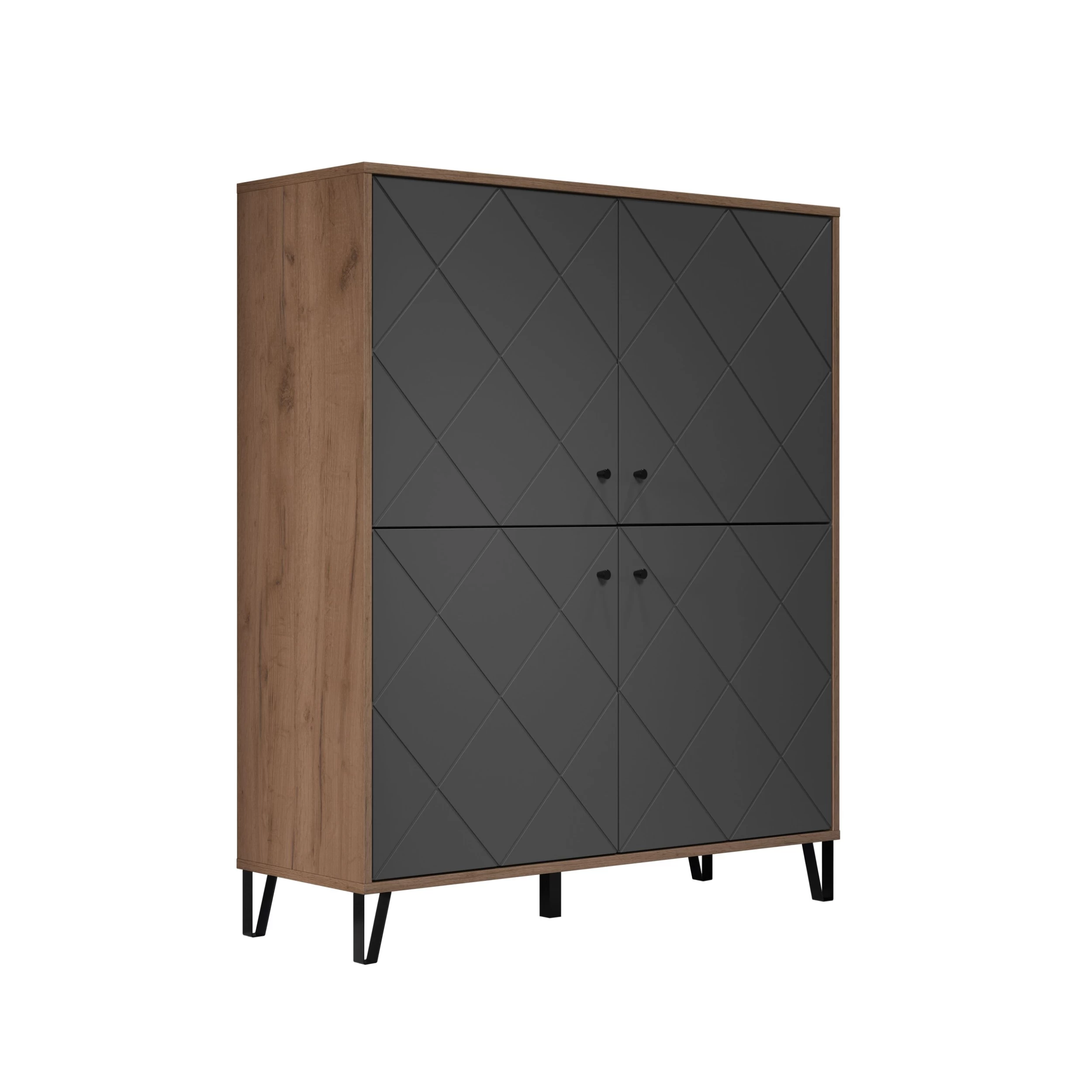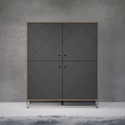 De hoge kast uit de Montez-reeks is de perfecte oplossing voor maximale opbergruimte in elke kamer. Met zijn 4 deuren in een stijlvol ruitpatroon en 4 legplanken heb je genoeg ruimte om al je spullen op te bergen. Met afmetingen van ongeveer 123 x 136 x 40 cm is dit highboard compact genoeg om in kleine ruimtes te passen zonder aan opbergcapaciteit in te boeten.